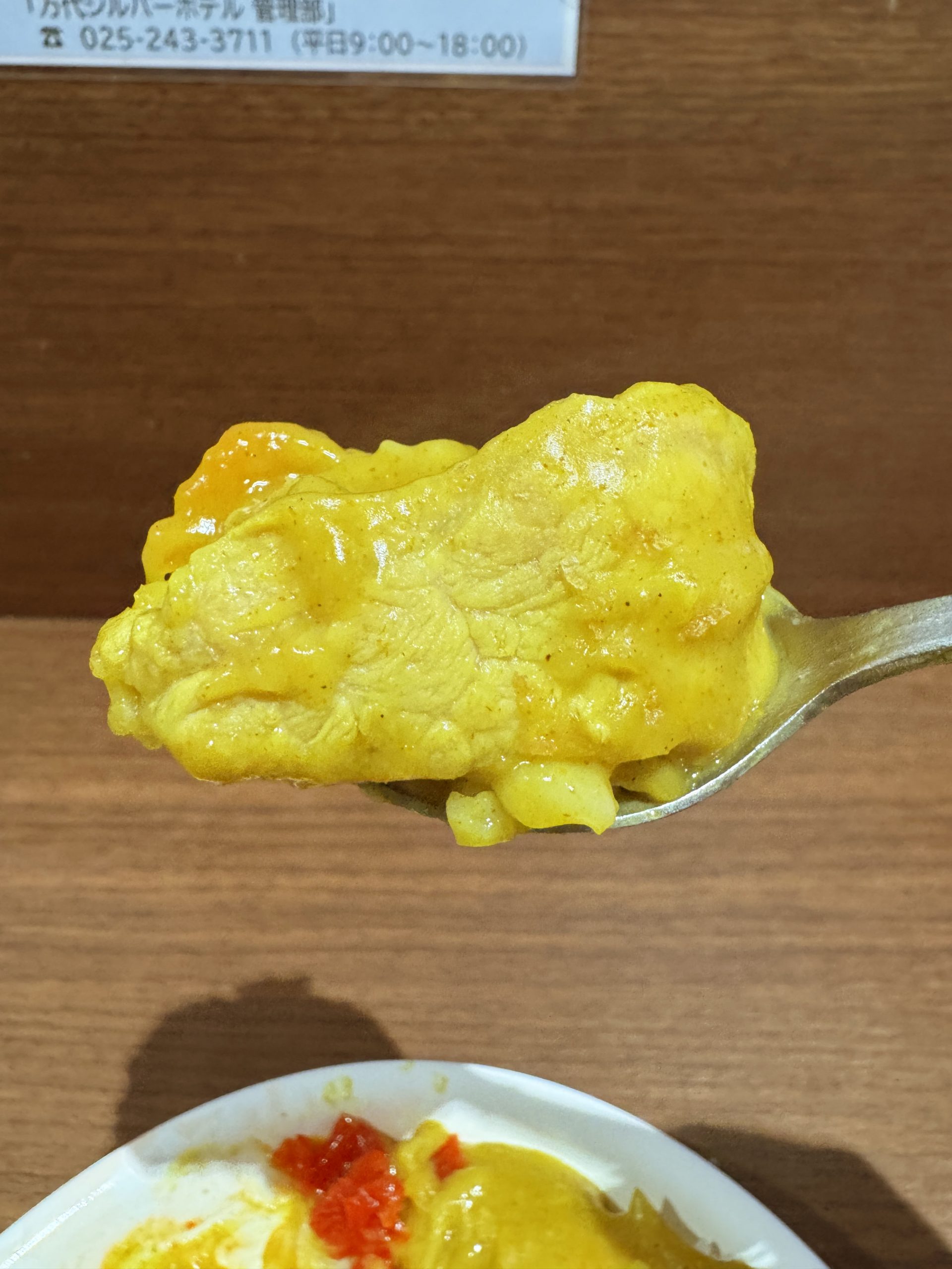 ちなみに、万代バスセンターのカレーは、ときおり入っている豚肉スライスが超絶美味。これが入っているとラッキーともいえる存在。