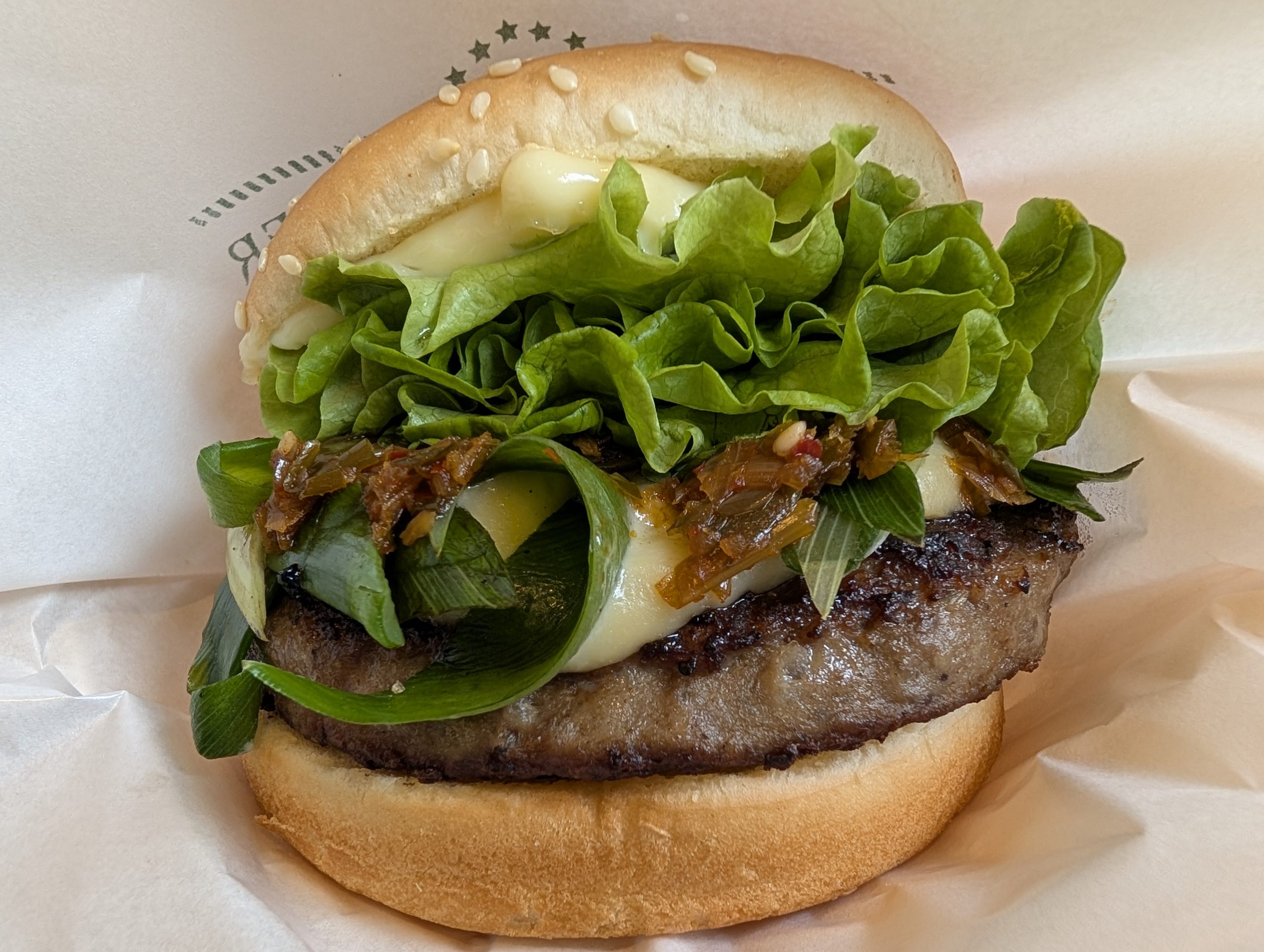 ジューシーで旨みあふれる国産黒毛和牛100%パティ、グリルされ甘みと香ばしさを引き出した九条ネギ、そしてまろやかな口当たりと深いコクが特徴の西京味噌ソースを合わせたゴージャスな一品。アクセントにピリ辛のネギ生姜だれを使用しつつ、なめらかな西京味噌ソースの上品で深いコクが特徴。黒毛和牛の美味しさが最大限に引き出されたバーガーです。