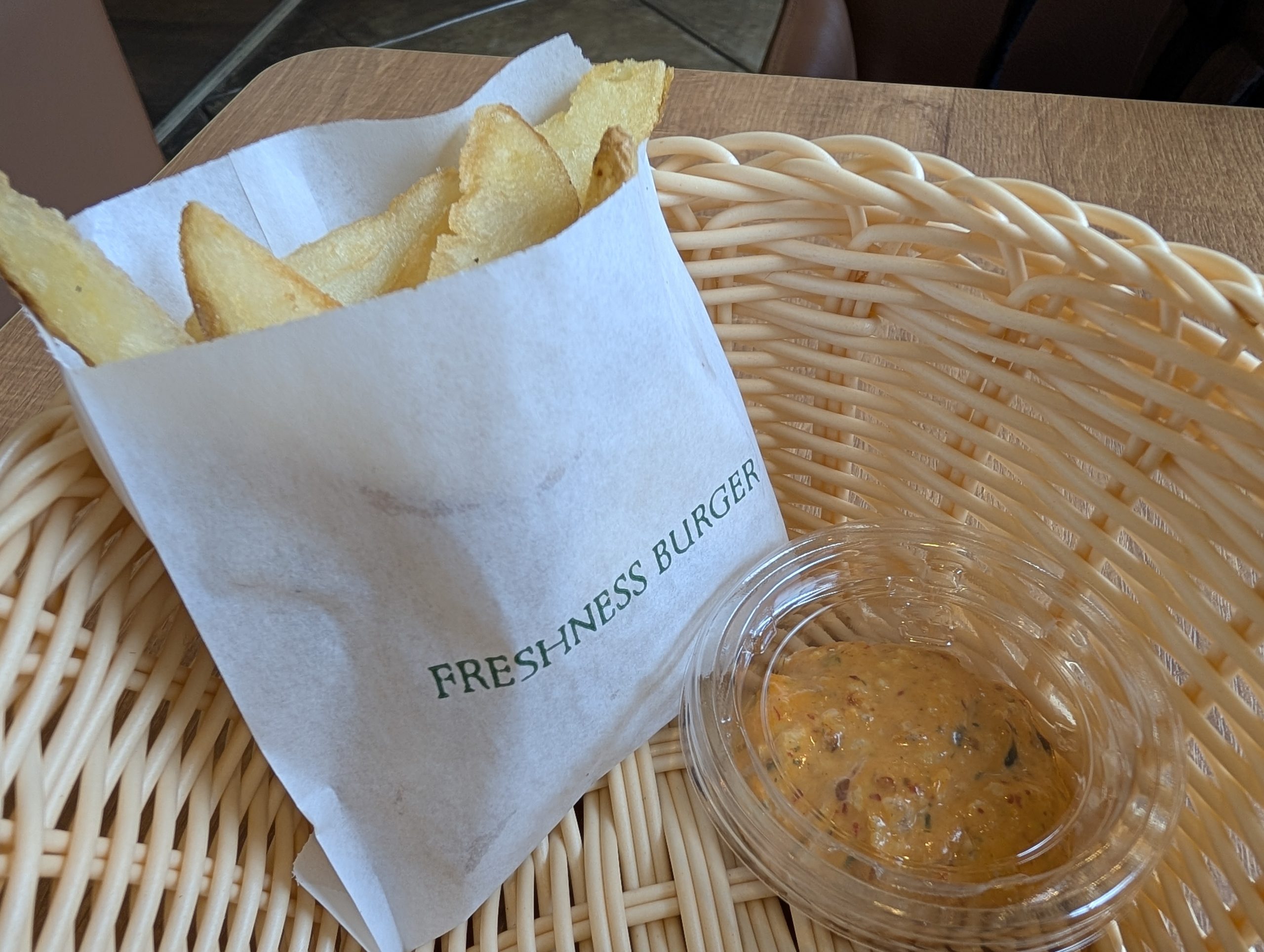 試食の会場となった場所は、フレッシュネスバーガー 中目黒店。中目黒駅前にも別の店舗がありますが、会場には池尻方面へ徒歩で向かいました。
