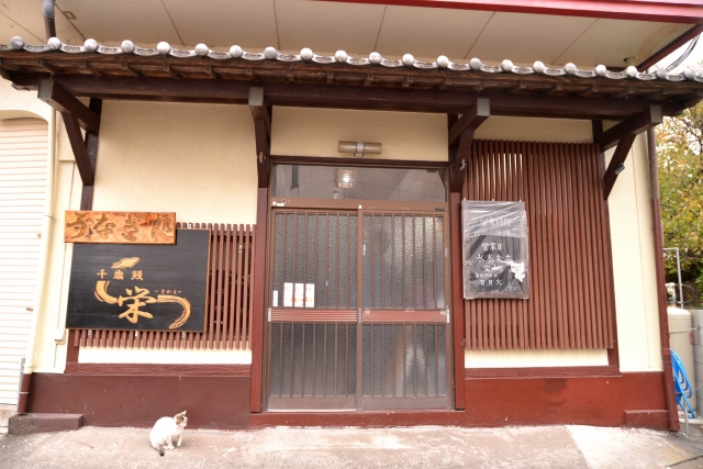 ▲『うなぎ処 栄』の外観。蒲焼をはじめ、ウナギの握り寿司、骨煎餅、天ぷらなどメニューが豊富でリーズナブル