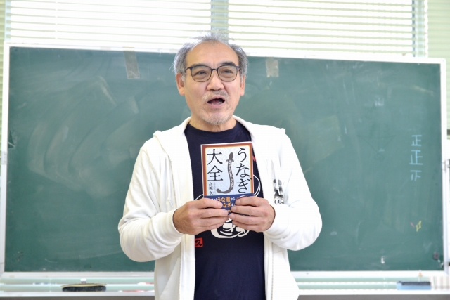▲ウナギ愛好家の高城さん。持っているのは著書『読めばもっとおいしくなる うなぎ大全』
