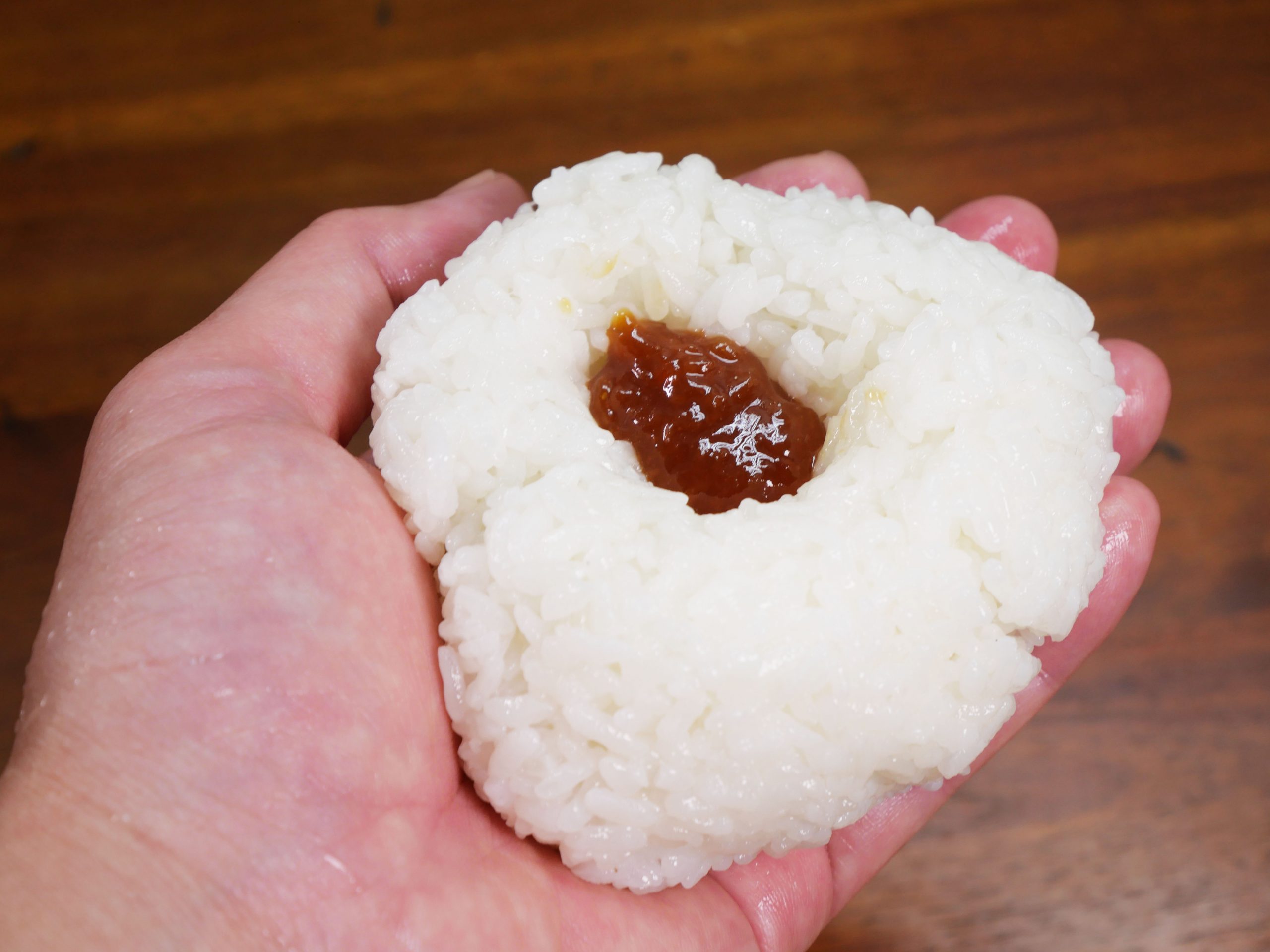 しかし今回は、より具材の味を強く感じたいと思い、おにぎりの中央に「ゆず味噌」を入れた。