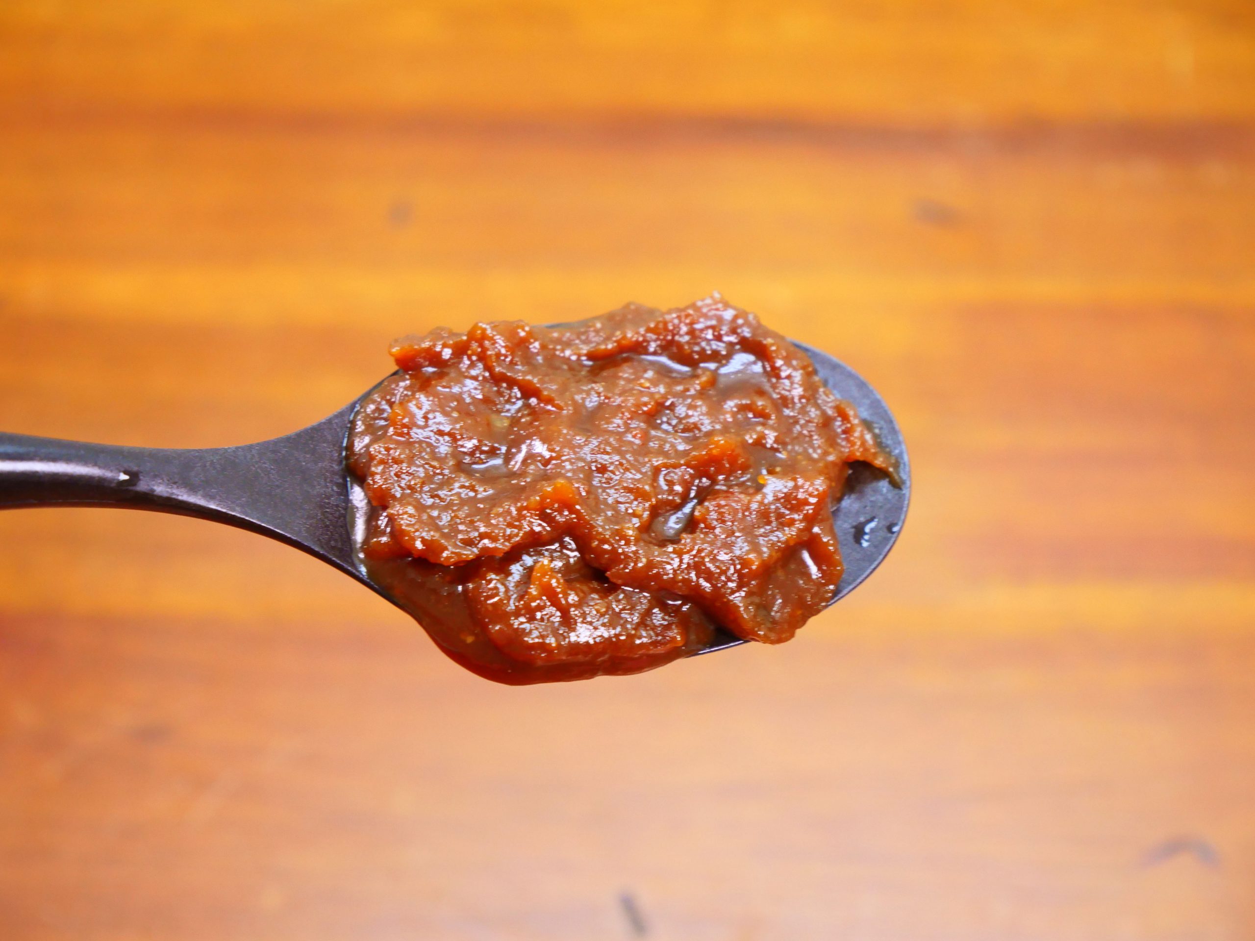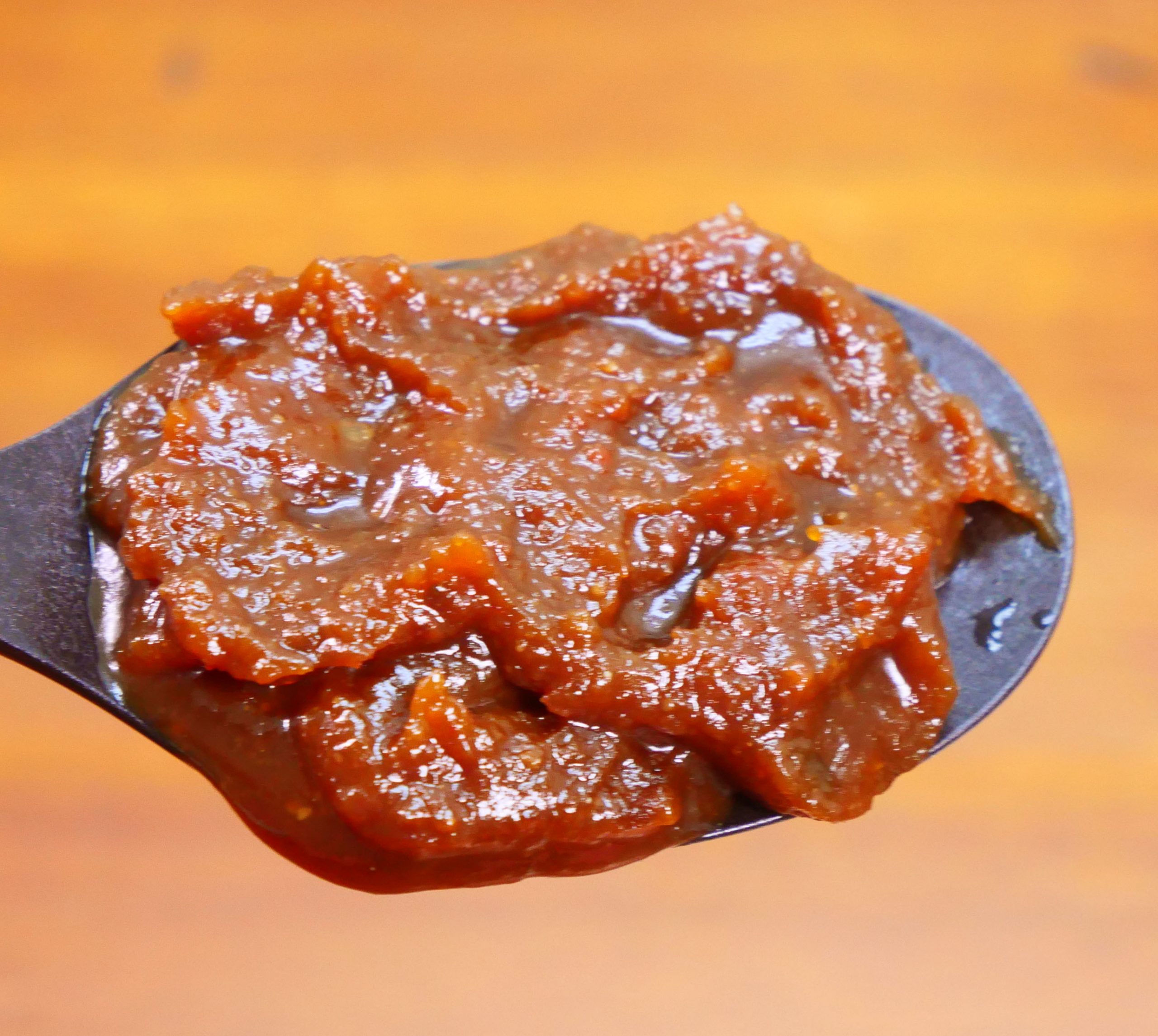 かなり甘めで、「ゆず味噌」よりも甘味が際立つ。