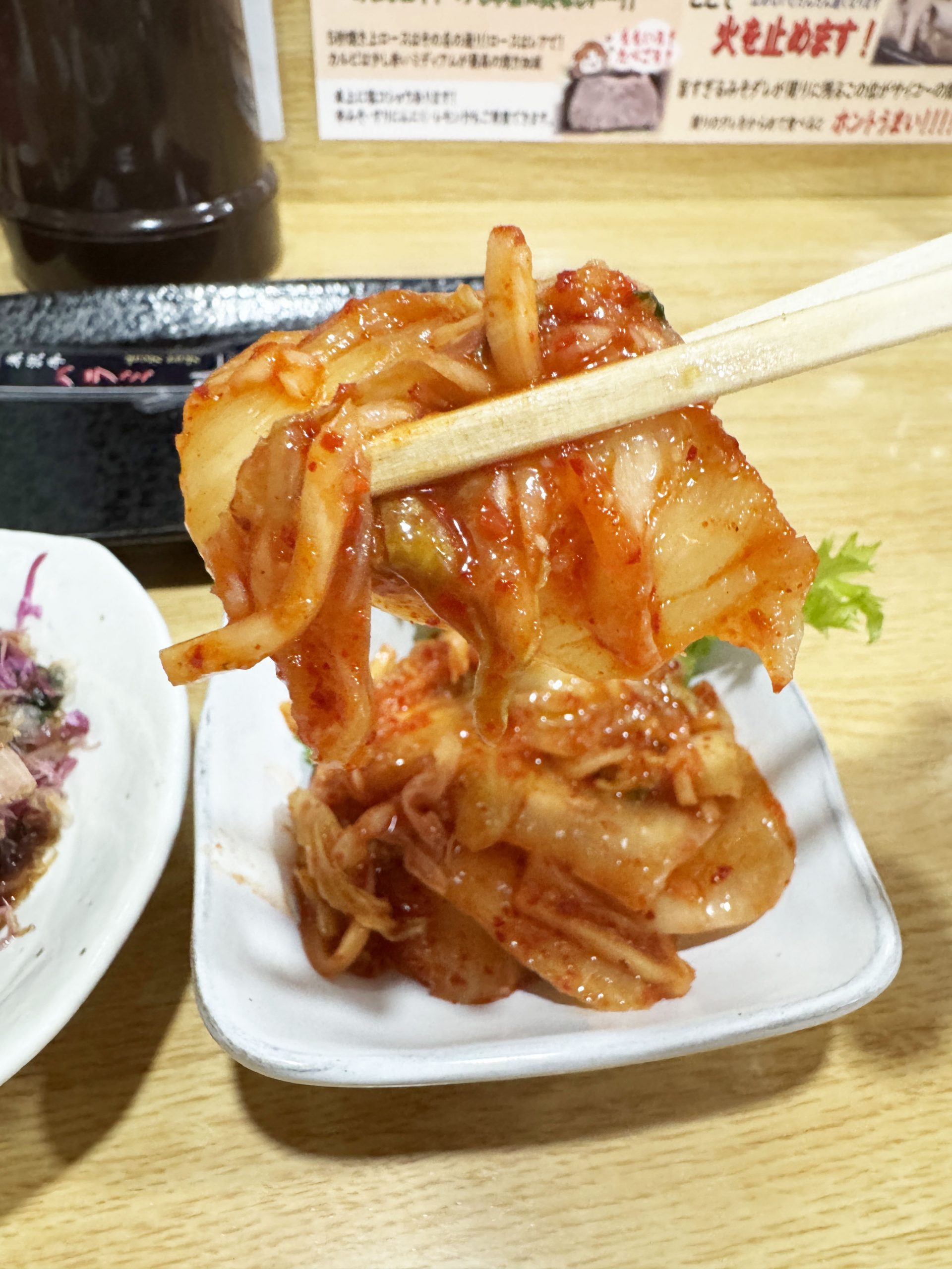 焼肉を食べつつキムチを食べれば、肉汁の旨味を辛味によって強調してくれる。たまらない相乗効果。