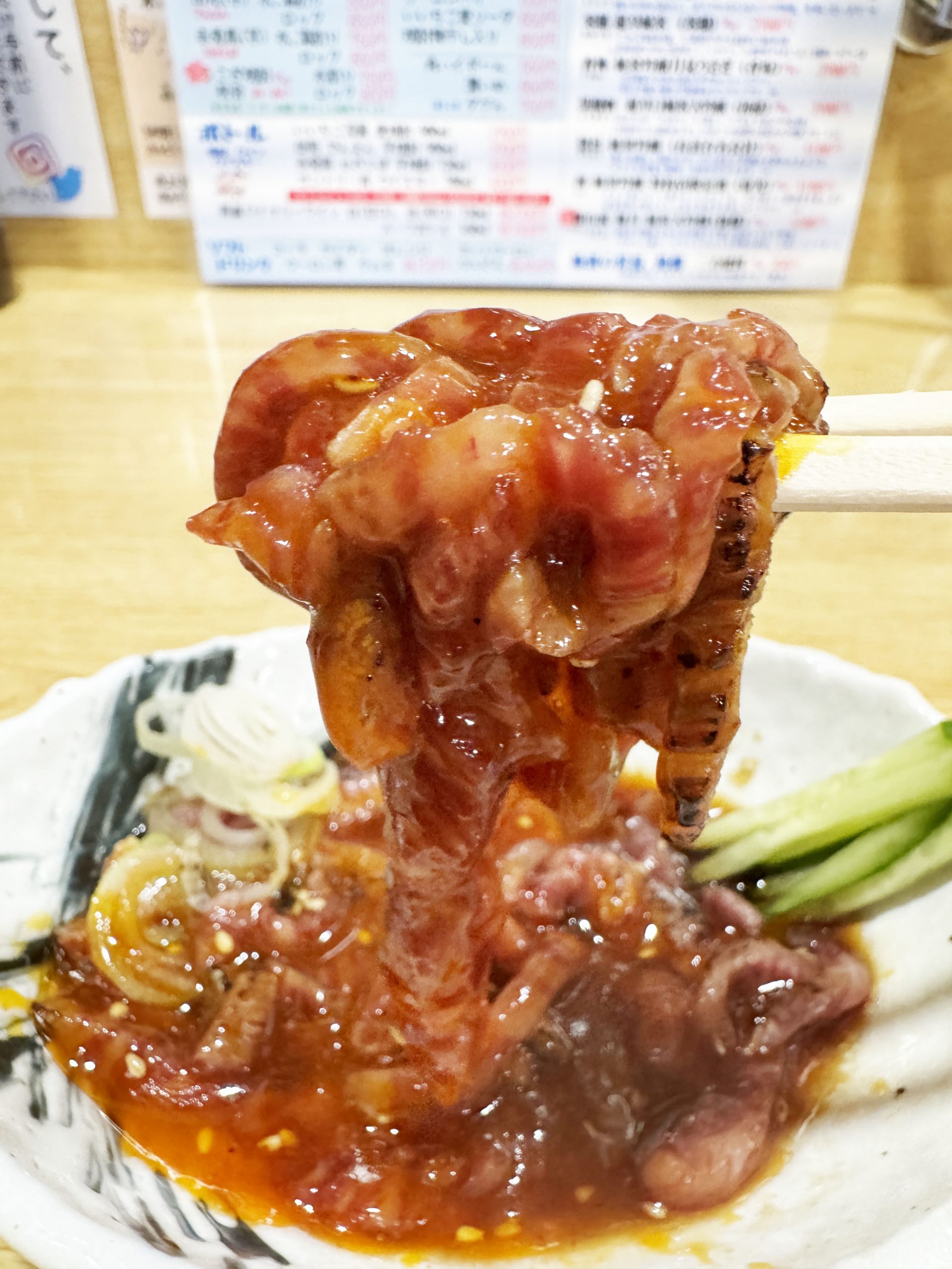 ただでさえユッケというだけで美味なのだが、これは米沢牛のユッケ。目の前にやってきた米沢牛ユッケは、しっかりと炙られて仕上げられていた。新鮮でおいしいだけでなく、安心安全ということか。
