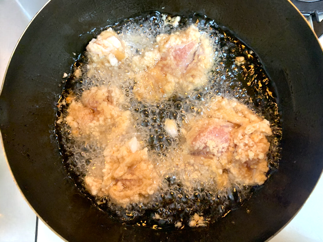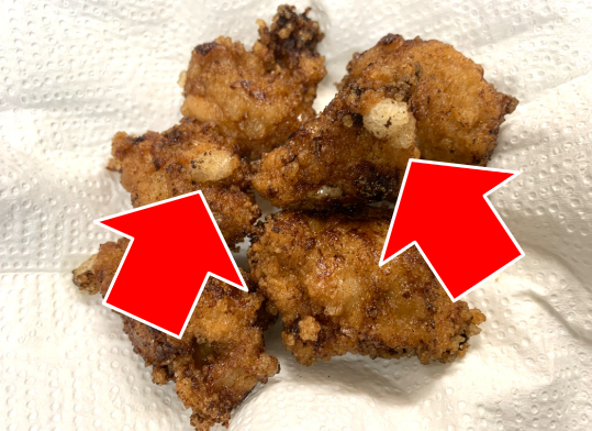 ⑦あとは油で揚げるだけです。普通の唐揚げよりも焦げやすいので注意です。