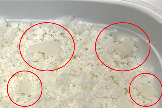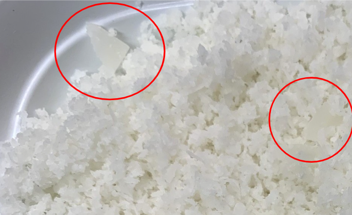 今回はほぼ全部すりおろしましたが、実際にはお餅の3分の1ぐらいは↓画像のような2~5ミリ角に切った細切れの欠片にするのがおススメです。