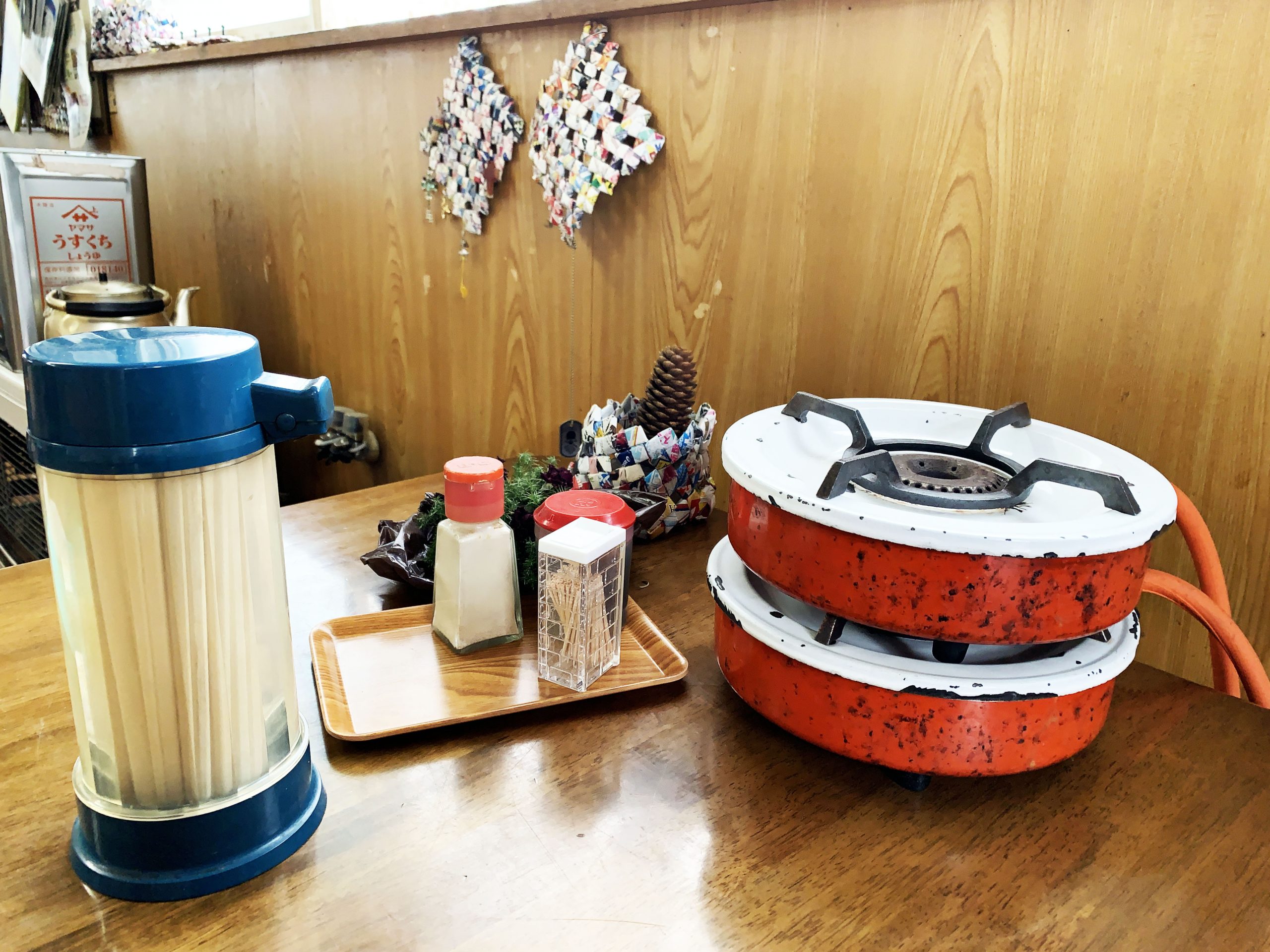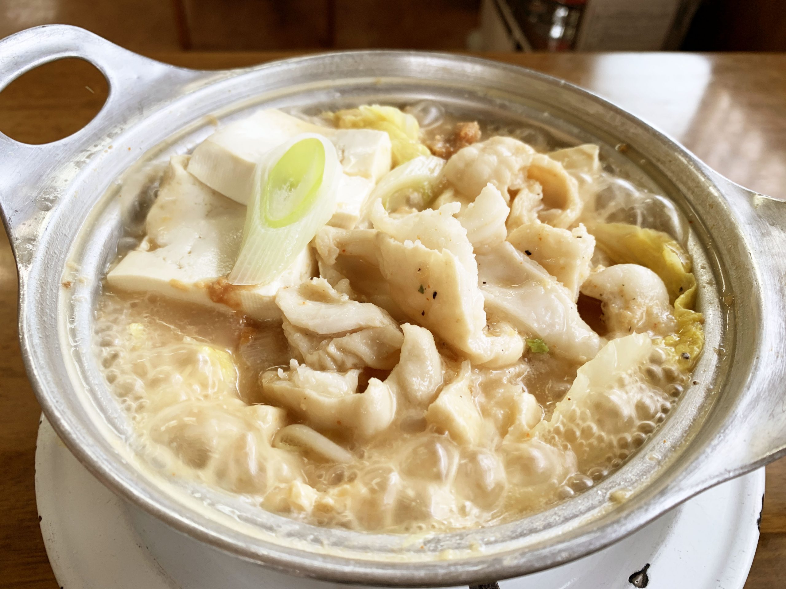 味付けは「ほぼ味噌のみ」と言っても過言ではなく、野菜とホルモンの食材から溢れ出るエキスと旨味が味噌と混ざり合い、そのウマさを織り成す。カセットコロンではなくガス栓による火力で沸騰させる点も、また情緒があってよい。「ふじた食堂」(岩手県盛岡市茶畑1-13-12)。