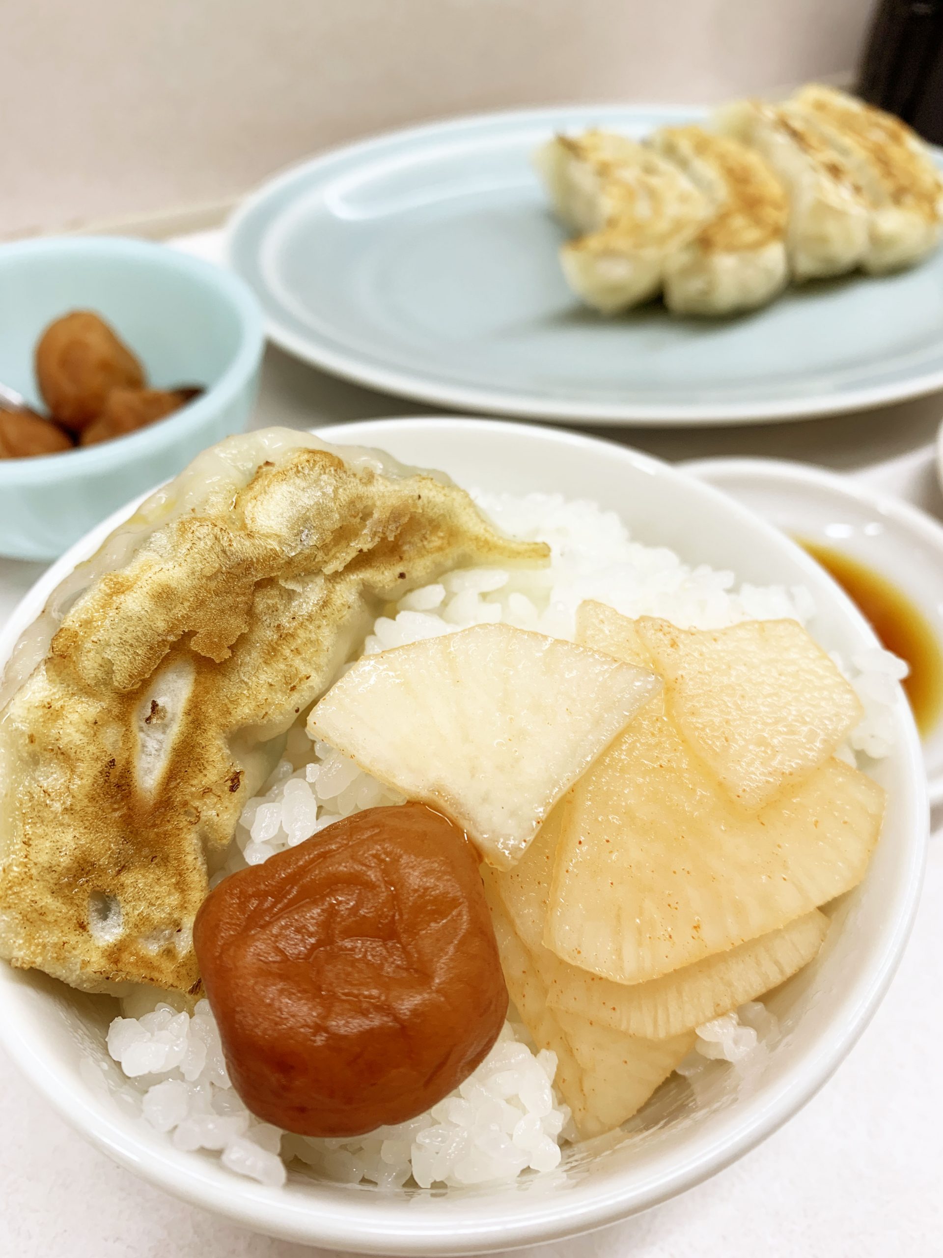 ここの餃子は秀逸。餃子とライスと漬物などでダイナミックな餃子メシを楽しむと至高。梅干しと餃子をあわせつつご飯をガッと食べると身も心も癒される。これ、毎日食べても飽きない。
