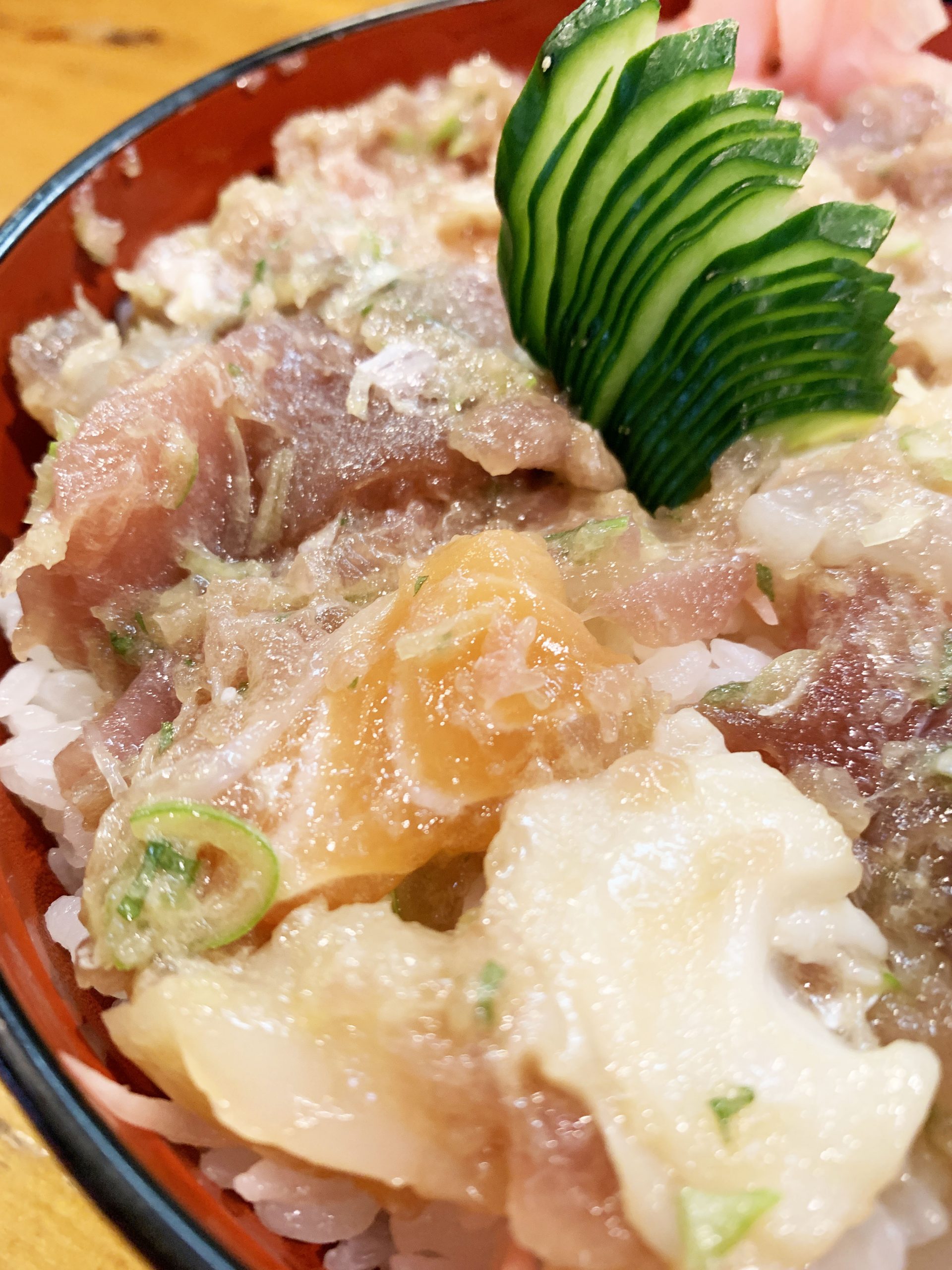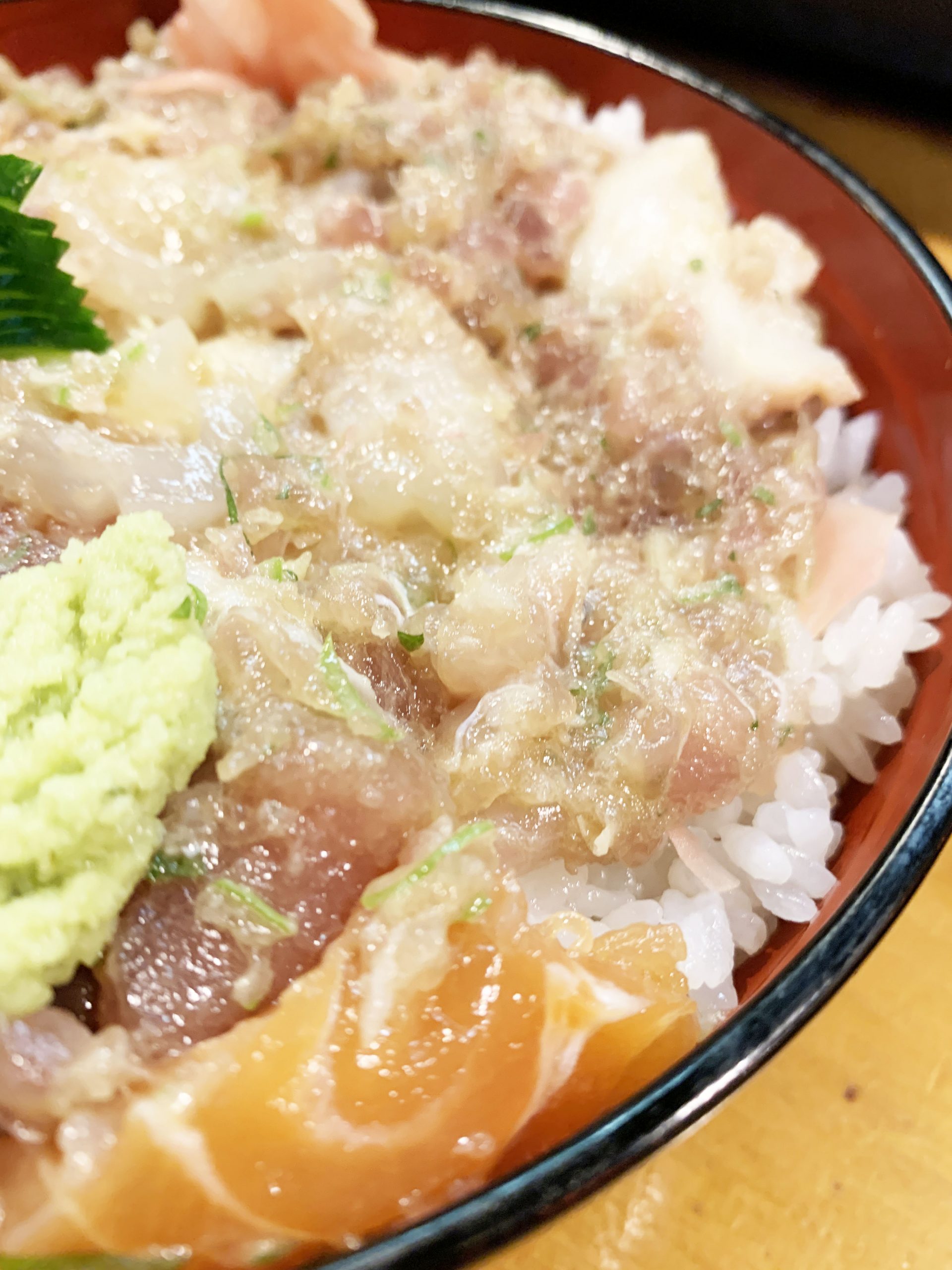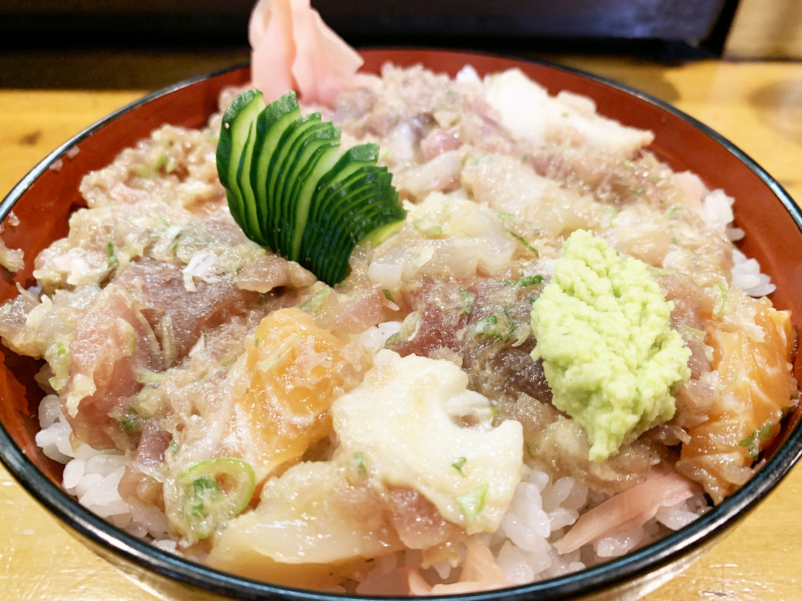そもそも寿司屋としておいしい店だが、ここのまかない丼はビジュ的にもアートであり、味的にも至高。まるで宝石箱かとおもえるほどキラキラと輝く魚介類の盛り。