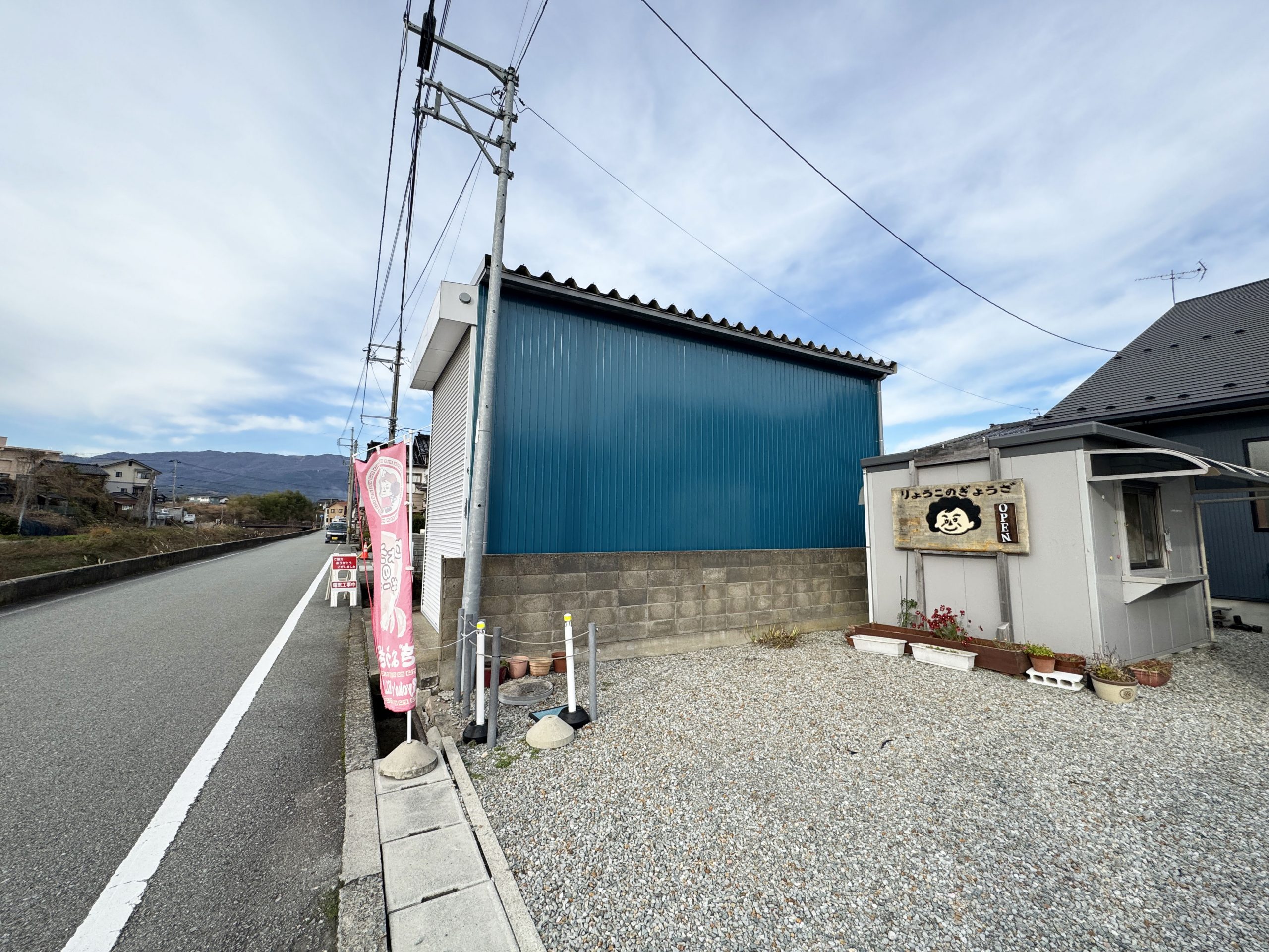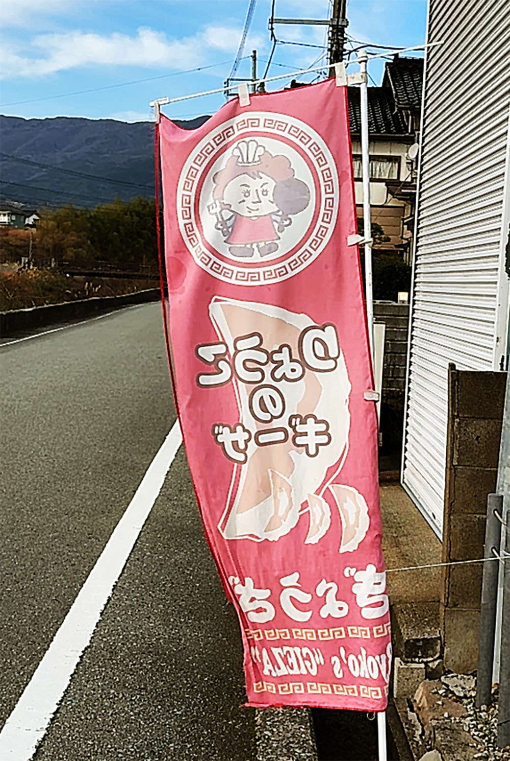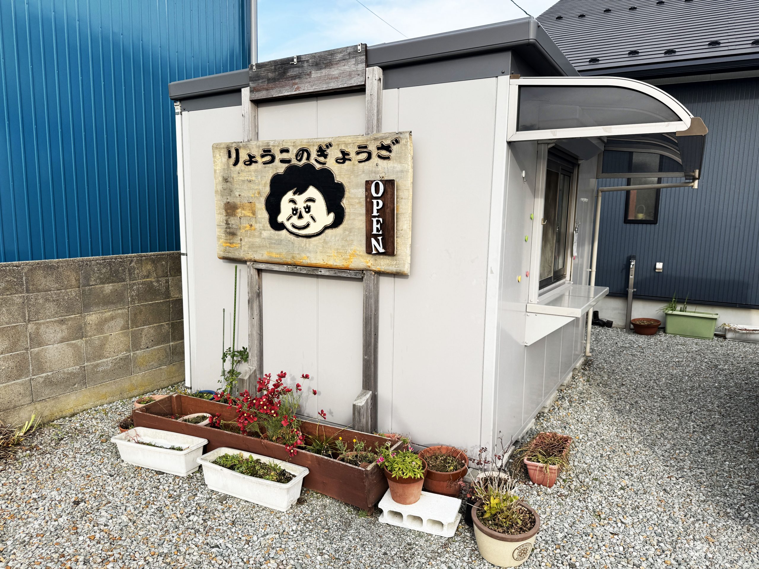 餃子を販売している「りょうこのギーザ」は、佐渡島の両津港からクルマで約20分、バスで約25分ほどの、のどかな住宅地にある。住宅の敷地内にある小屋で餃子が作られており、おばちゃんがいないときは、住宅のインターホンを押して「餃子くださーい」と言って呼び出す。