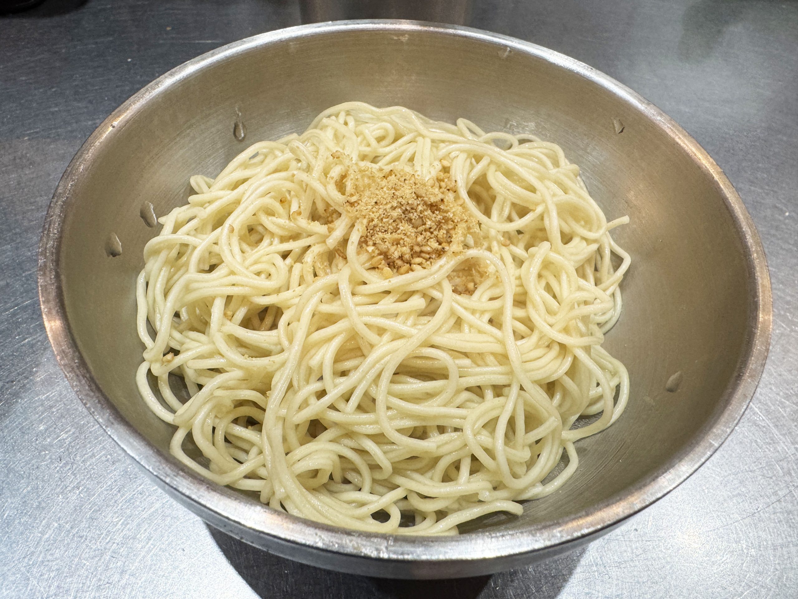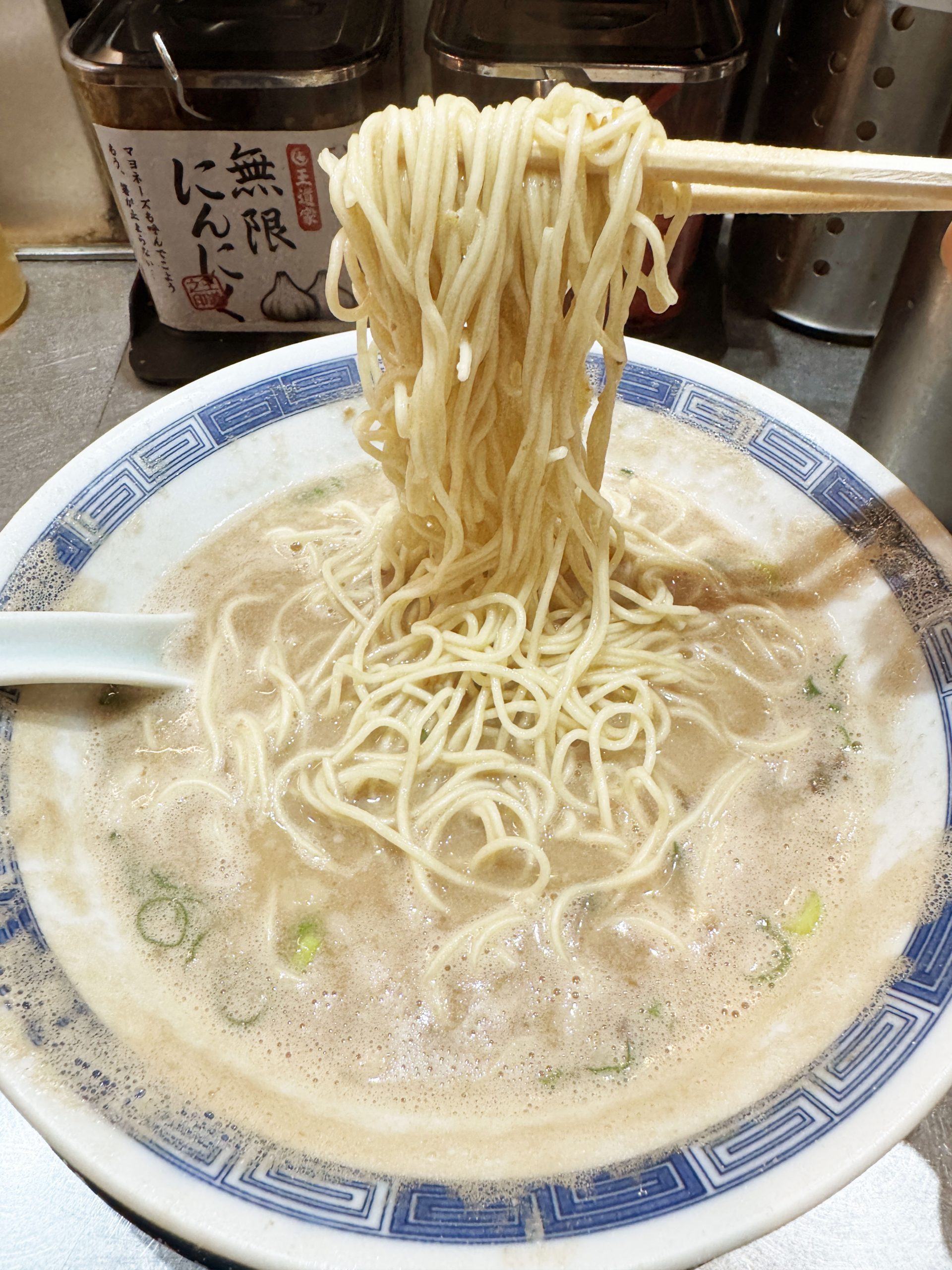 細麺なので、食べた際の麺の広がりが大きく、2杯目だからこその特濃味を楽しめる。