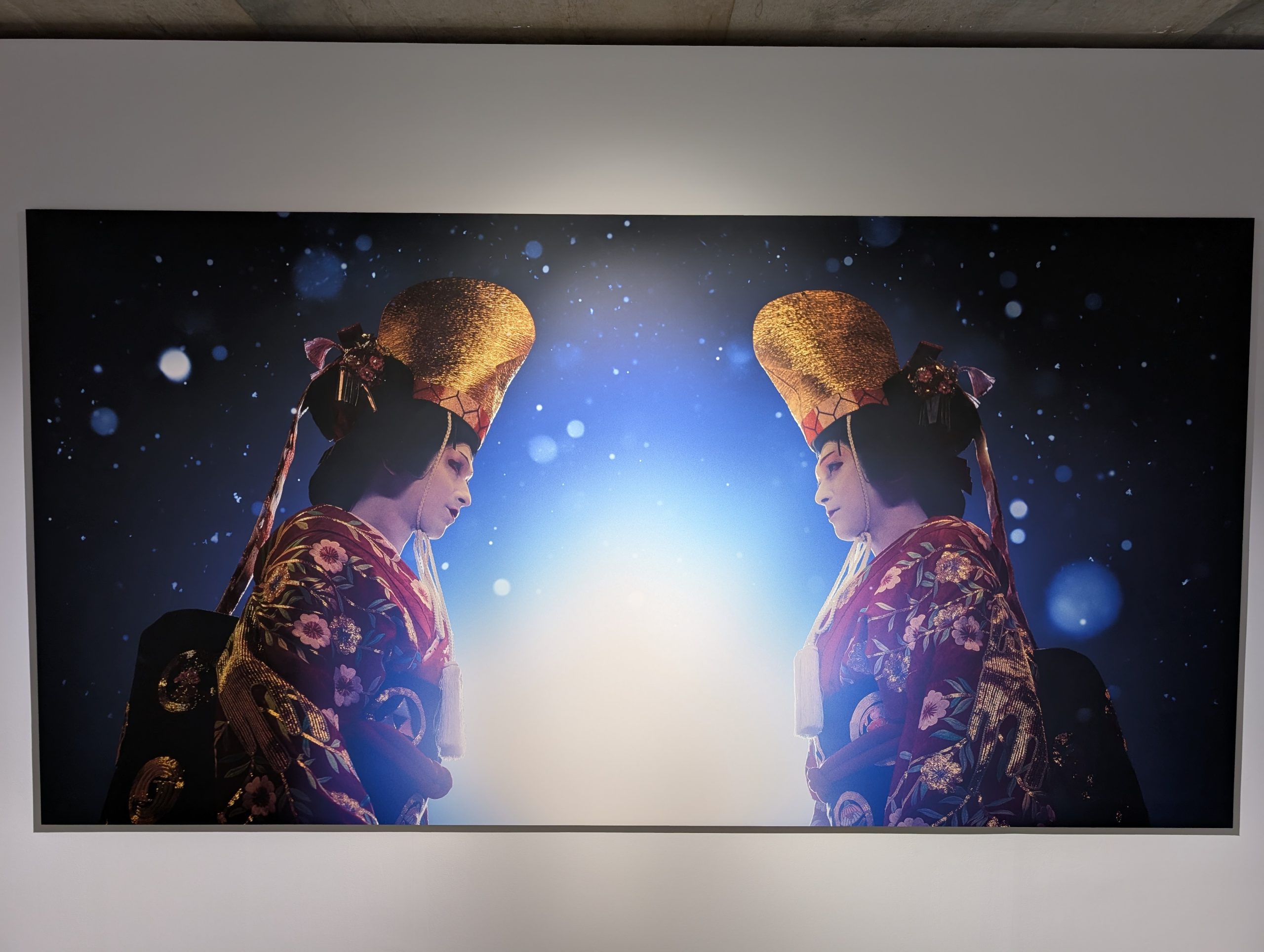 地下鉄の銀座駅から近いGinza Sony Parkの地下2階では、劇中の名場面をとらえた写真の数々を展示しています。吉沢亮が演じる主人公・立花喜久雄(花井東一郎)と横浜流星が演じる⁠大垣俊介(花井半弥)の丹波屋の継承をめぐる印象的なシーンなどのほか、