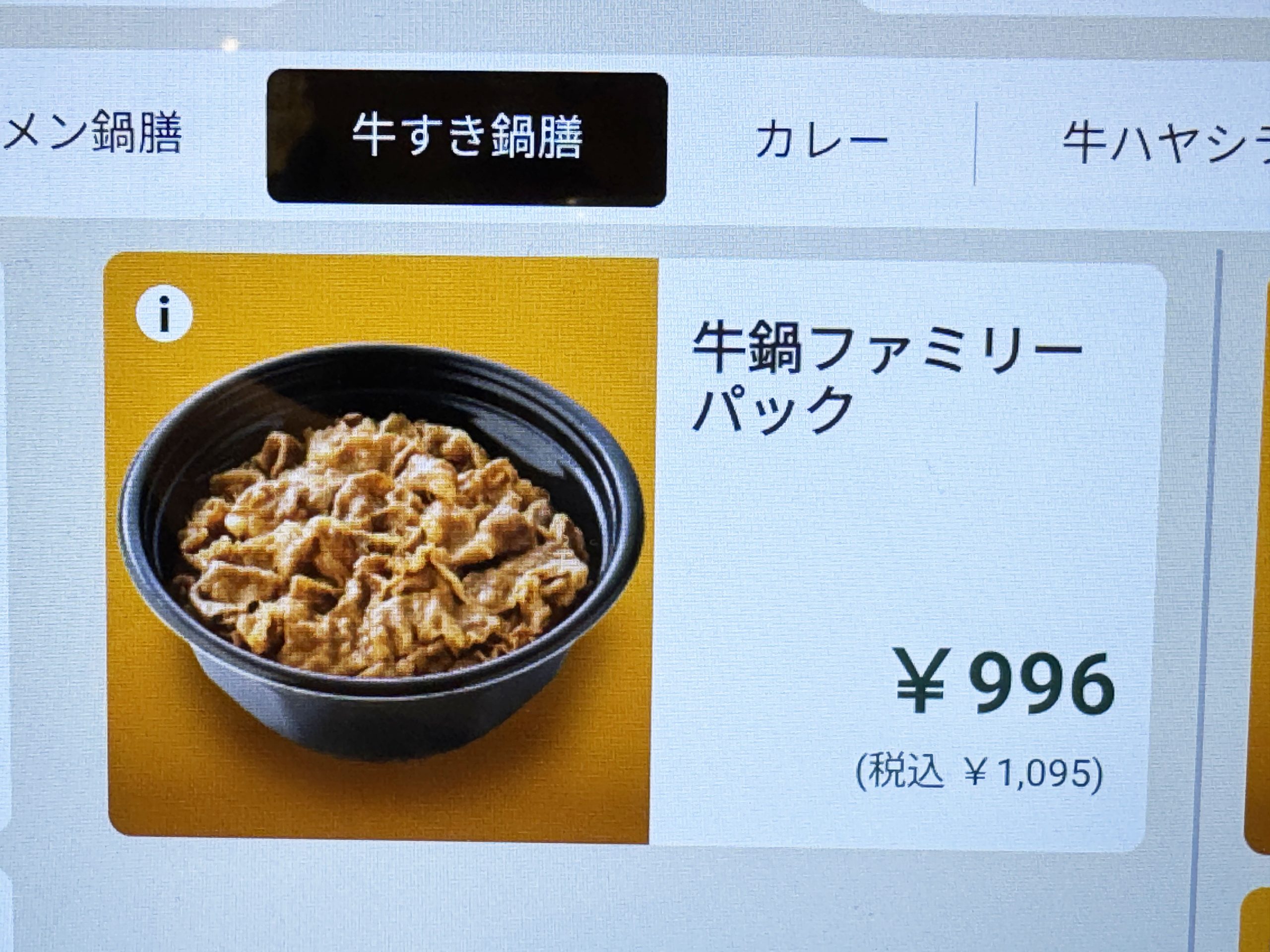 吉野家の他の定食と牛鍋ファミリーパックを合わせても美味