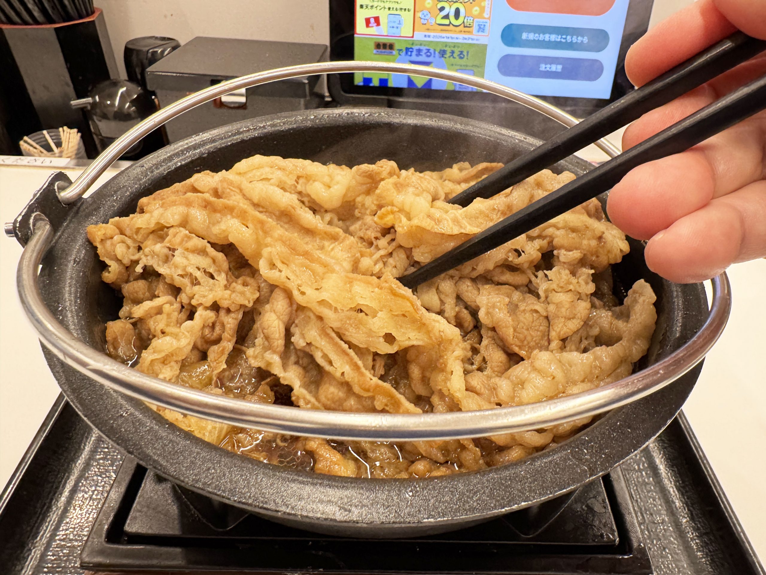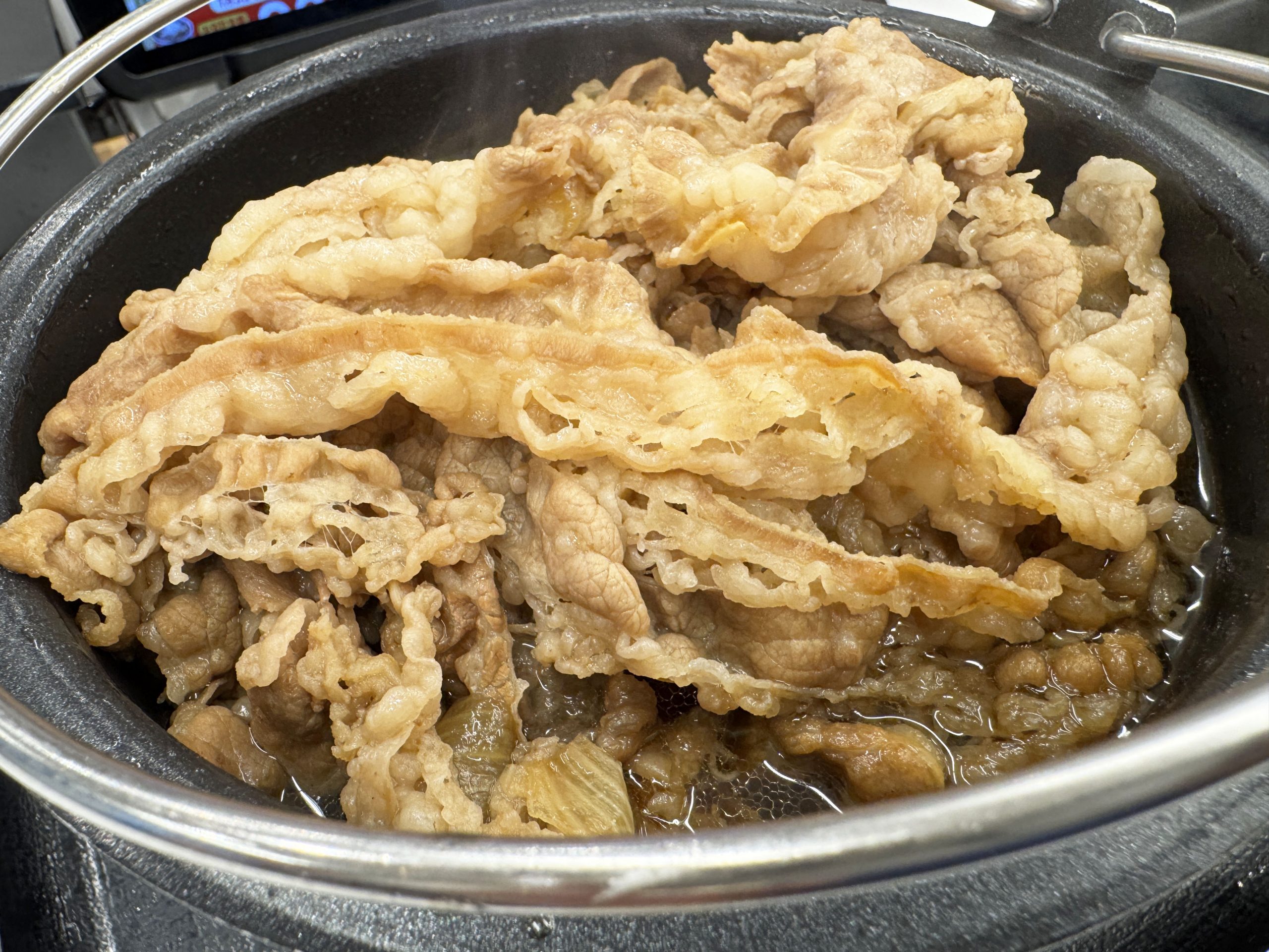 吉野家の牛肉だけを徹底的に味わえる最強メニュー「牛鍋」は、タマネギなし牛肉をガッツリ旨味が濃い汁で楽しめる究極的吉野家メニューなのでオススメです。ライスと共に食べると至高。濃い汁もたっぷり牛肉ライスにかけて食べると幸せ♨️https://t.co/8UDntYZqYJ pic.twitter.com/OTfXM1LArH