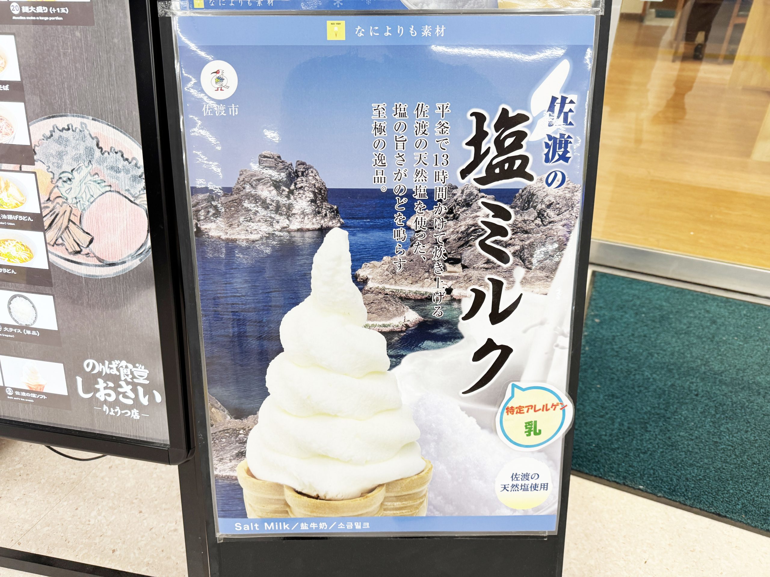 徹底的に時間をかけて丁寧に作られた佐渡島の塩を使用したソフトクリームです。