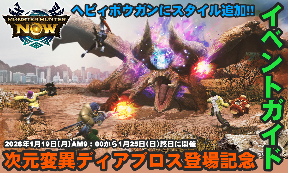 本記事では、2026年1月19日(月)のアップデートで登場する次元変異ディアブロスに合わせて開催されるイベントを紹介。
