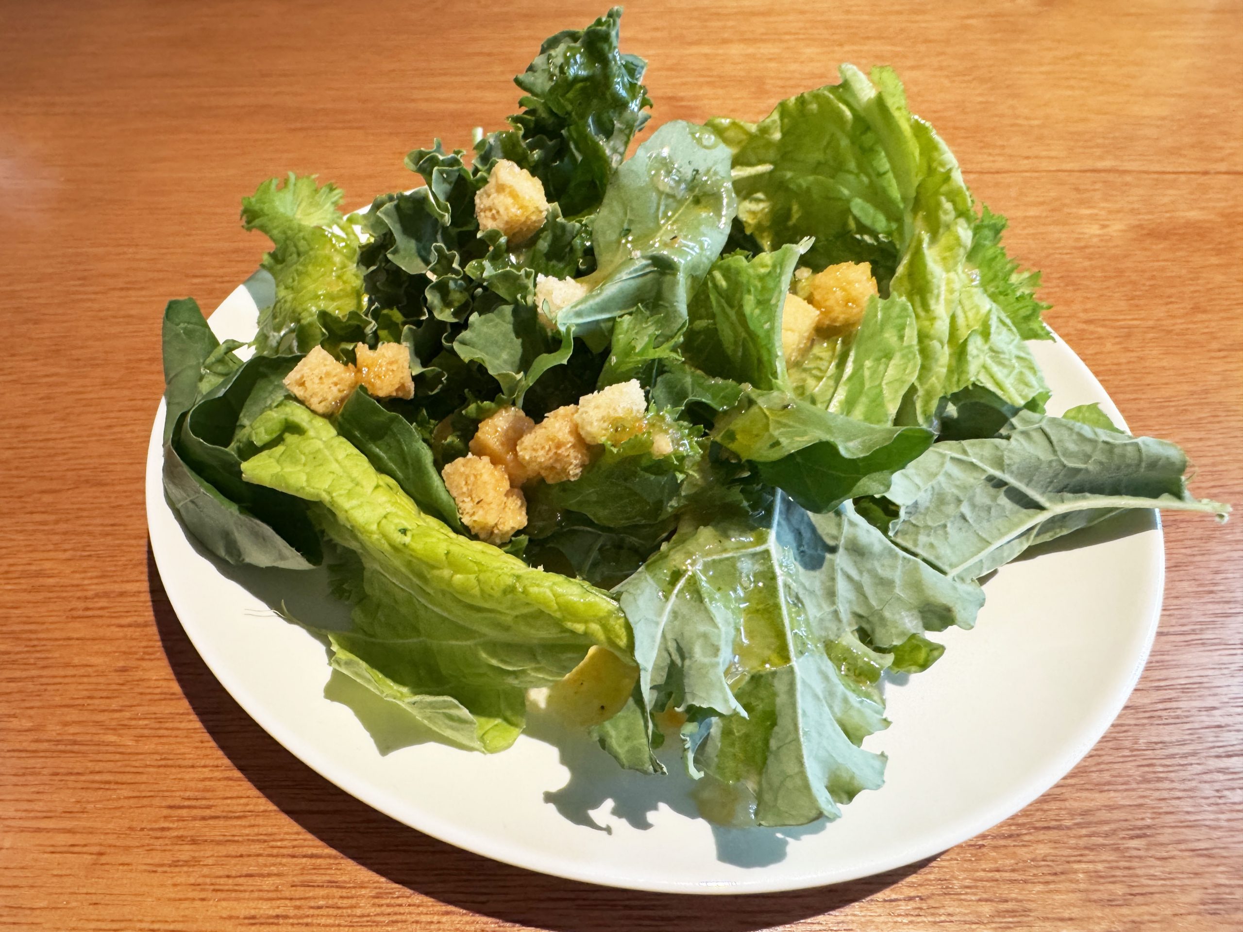 サラダは葉の存在をしっかり感じられるワイルドな仕上がり。