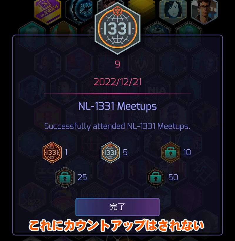そして2つ目が、NL-1331を呼び出したポータルをハックしても、ミートアップメダルにはカウントされないことだ。