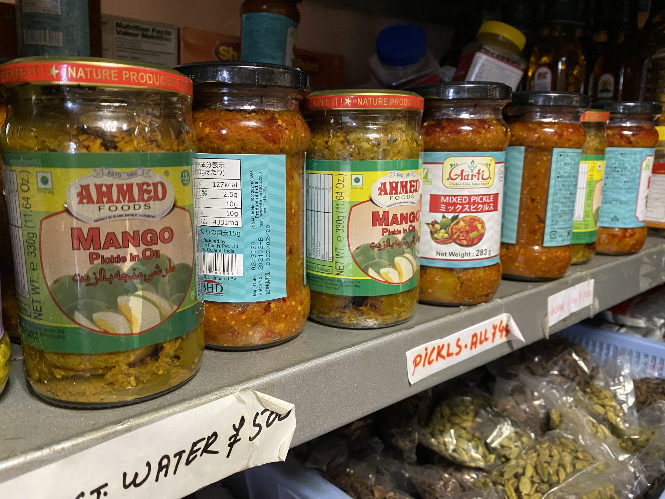 店内に入ると、テーブル席のほかに小上がりの座布団席もあって、雰囲気としては和風も混在している不思議空間。そしてなによりワクワクするのは、店内でインド食材が多数販売されている点。もはやここはインド食材商店。