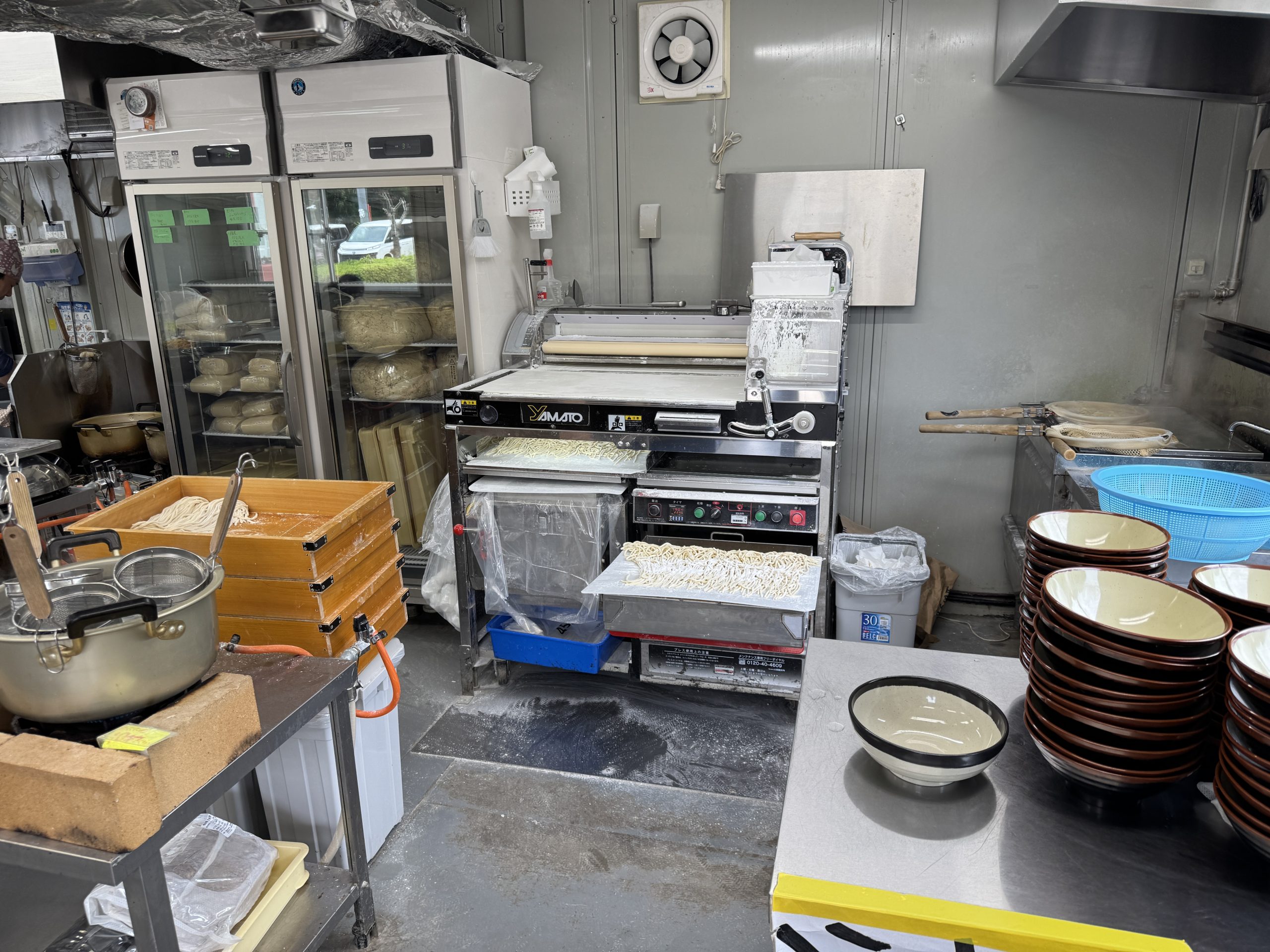 麺を作る、茹でる、仕上げる、盛る、食べる、すべてがひとつの空間にある。