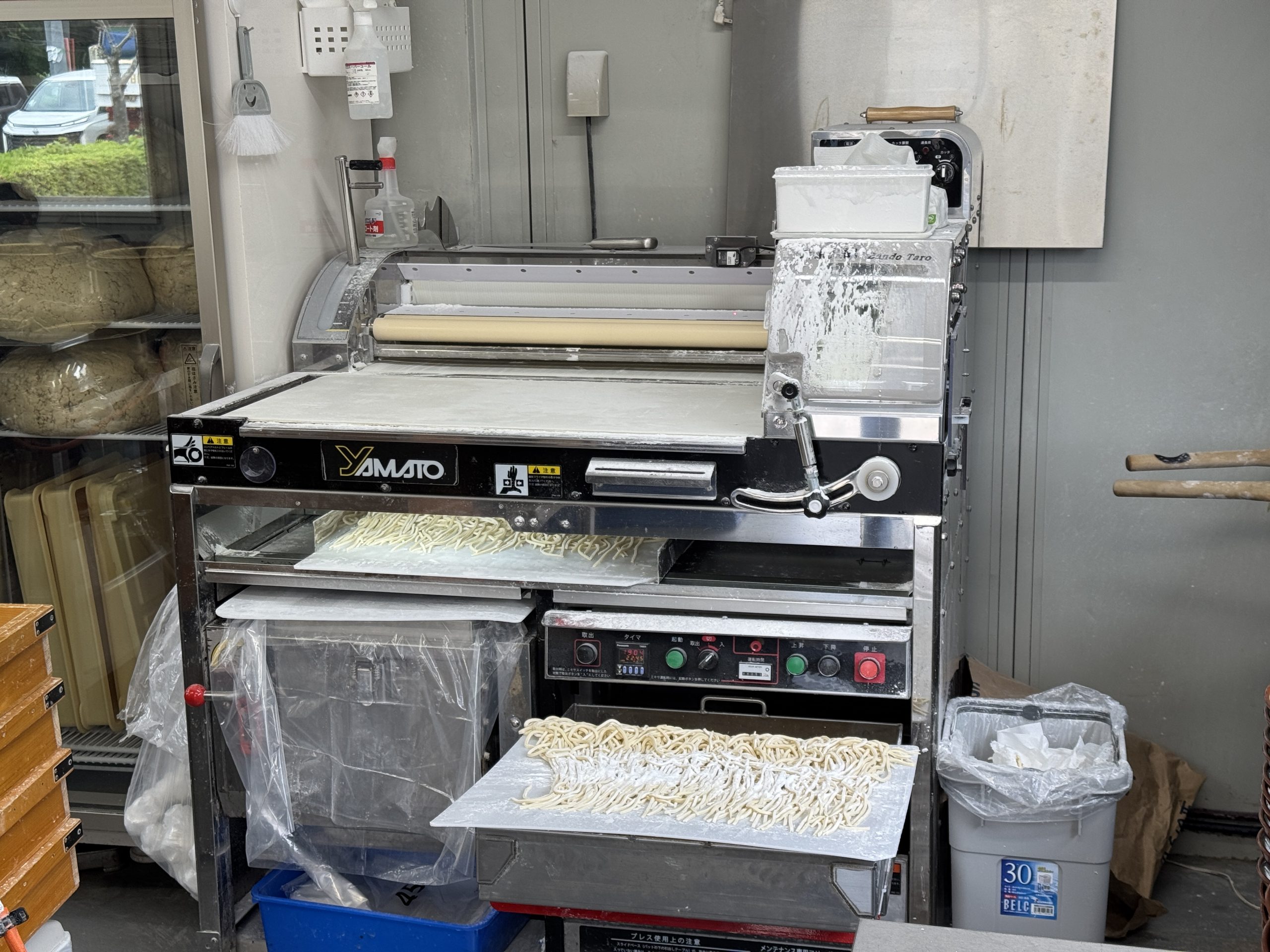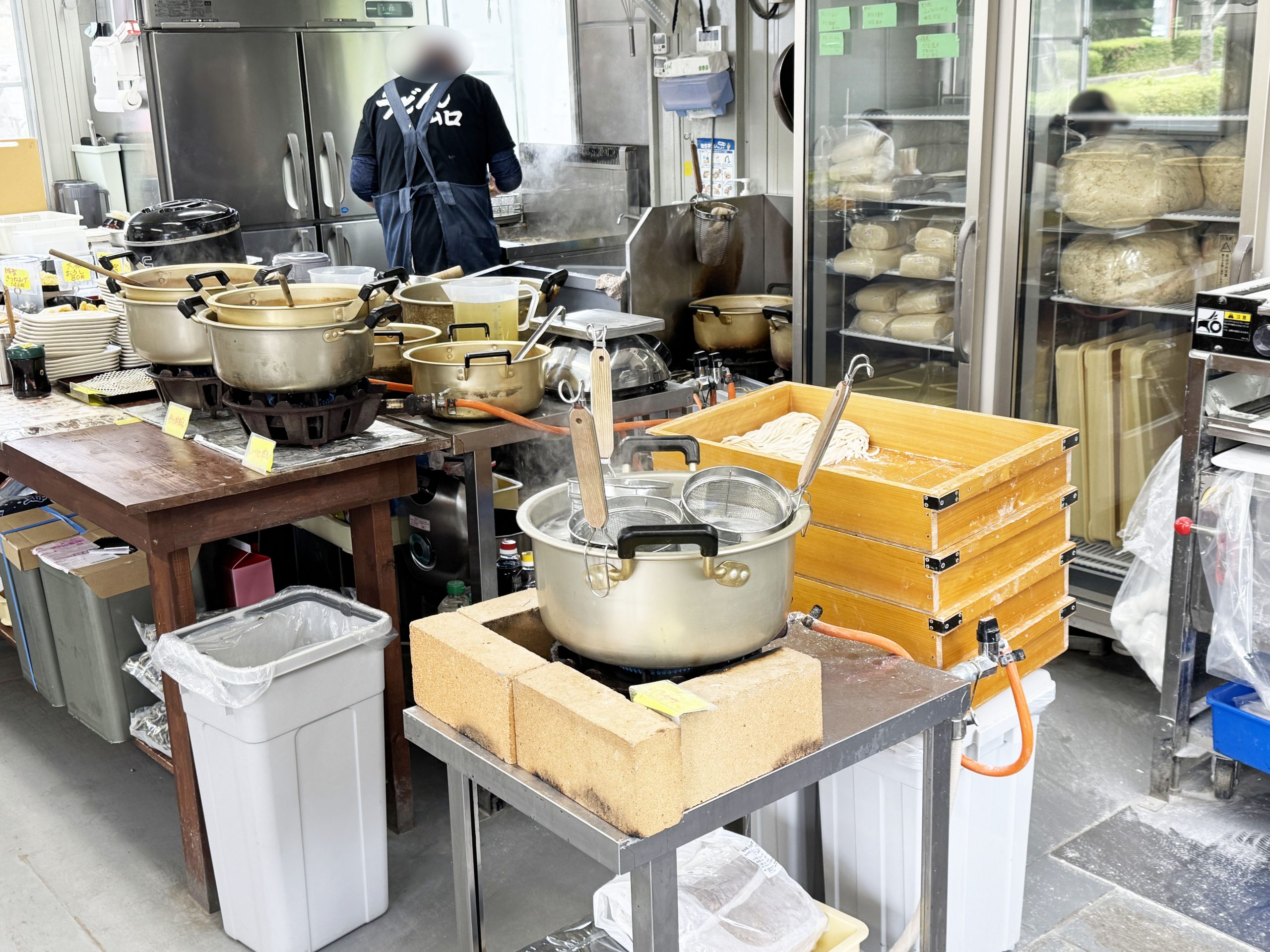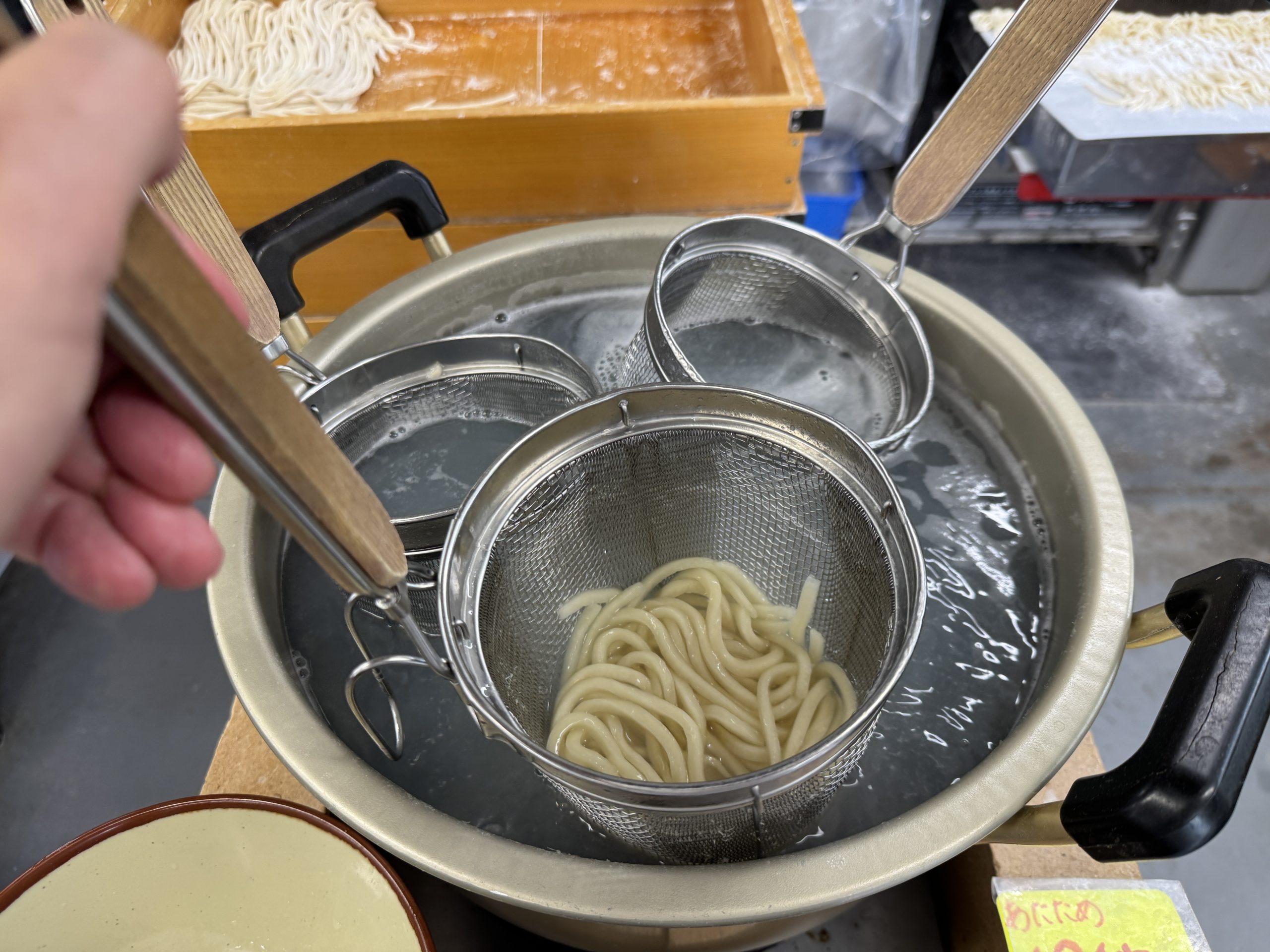 セルフ形式のうどん屋さんで、お客さんが自分でうどんを湯通しして食べるお店です。