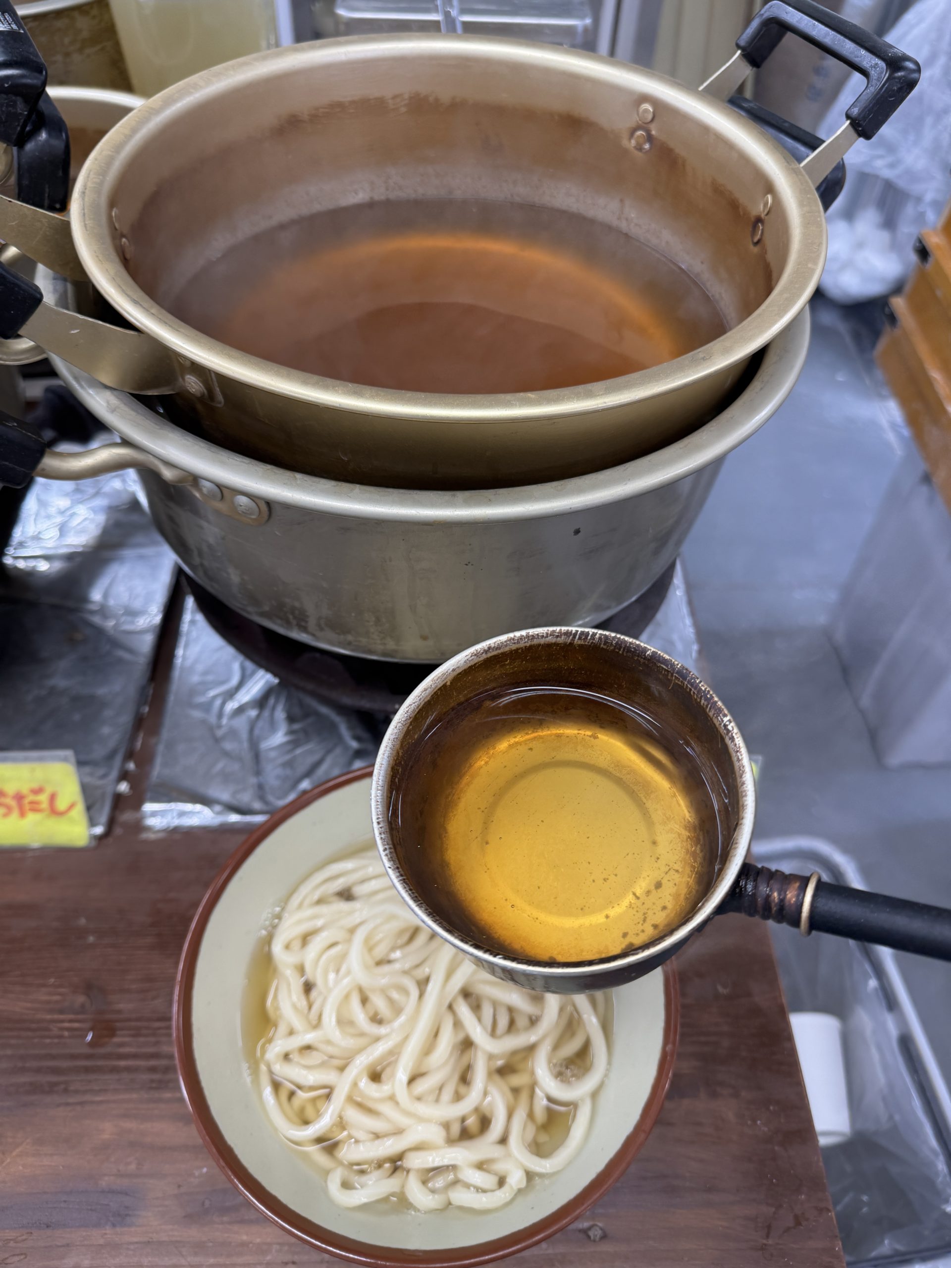 うどんを受け取ったら、それを自分で湯通しして温めます。
