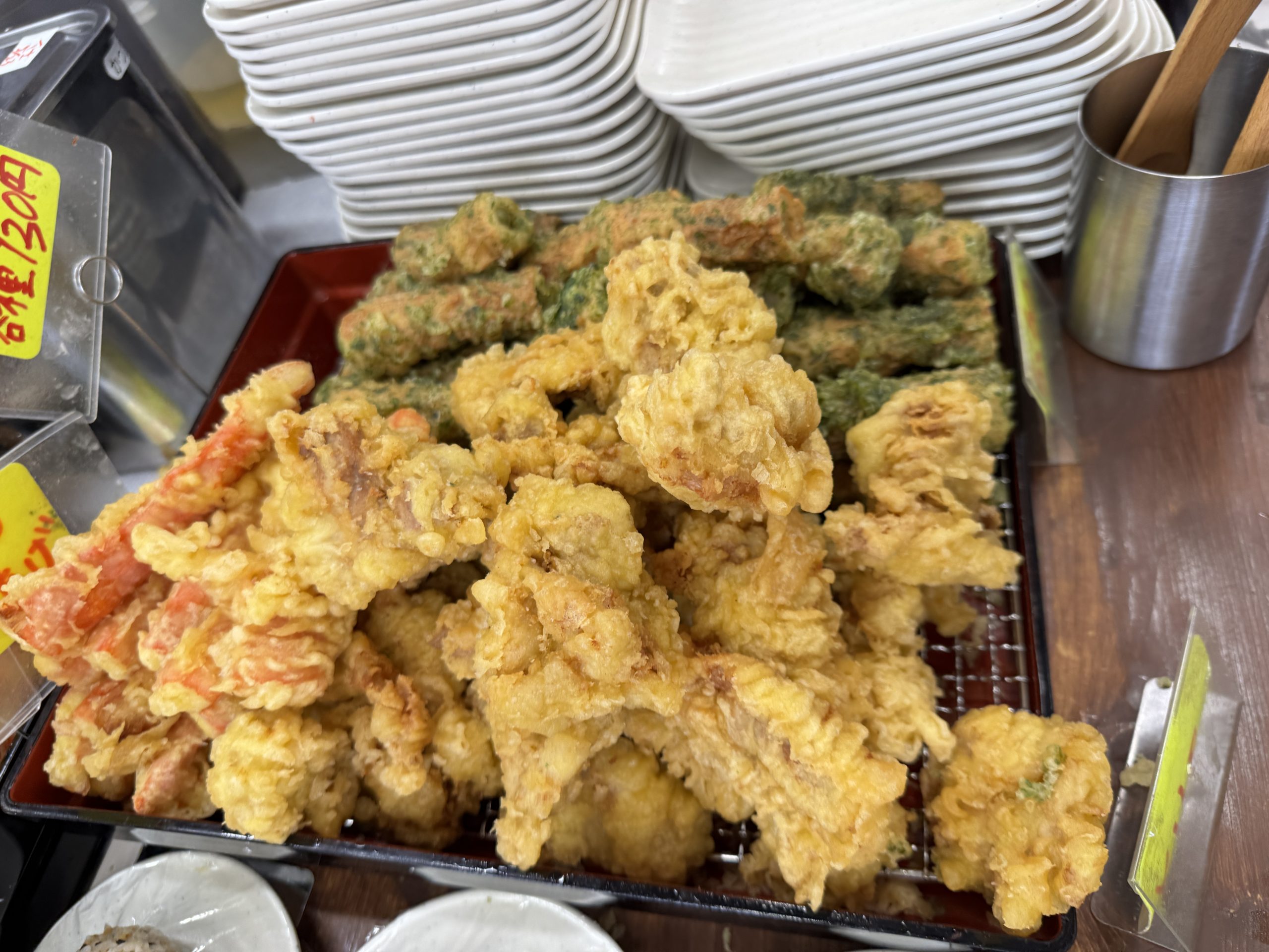 好きな味の汁をうどんにかけて、好きな具をのせていきます。