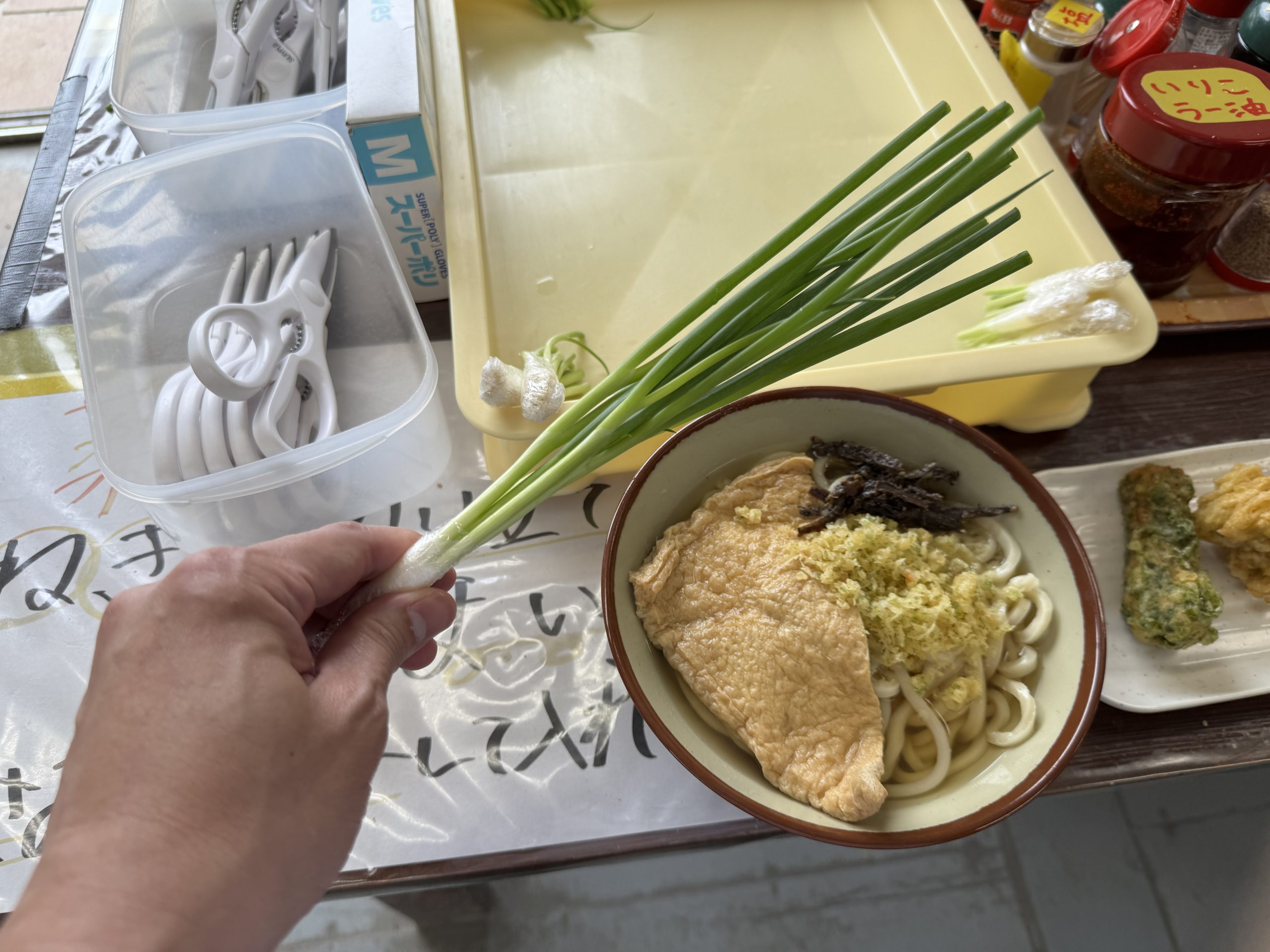 なによりワクワクした点は、長ネギを自分でカットしてうどんにのせる点。