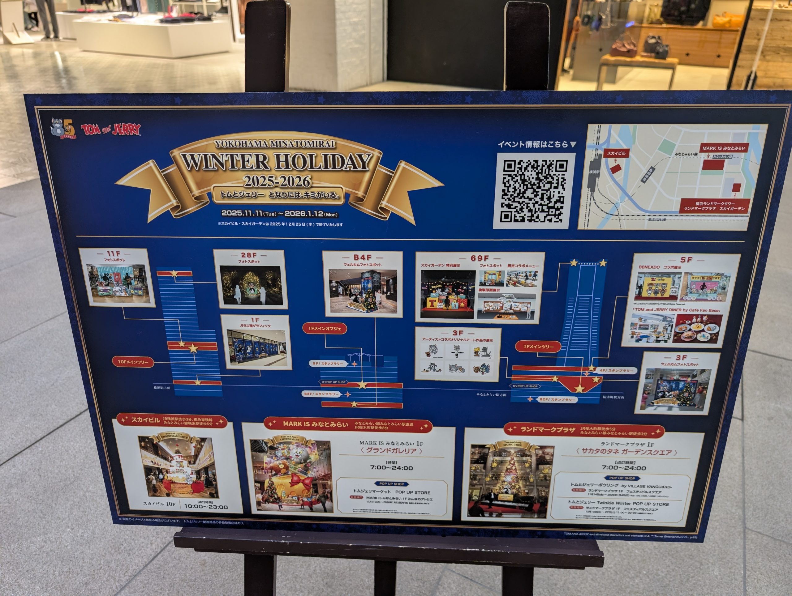 この冬、横浜ランドマークタワーやMARK IS みなとみらい、スカイビルなどでは、85周年を迎えた「トムとジェリー」のホリデーイベントを開催していたので行って来ました。広範囲だったのでその一部だけをご紹介!
