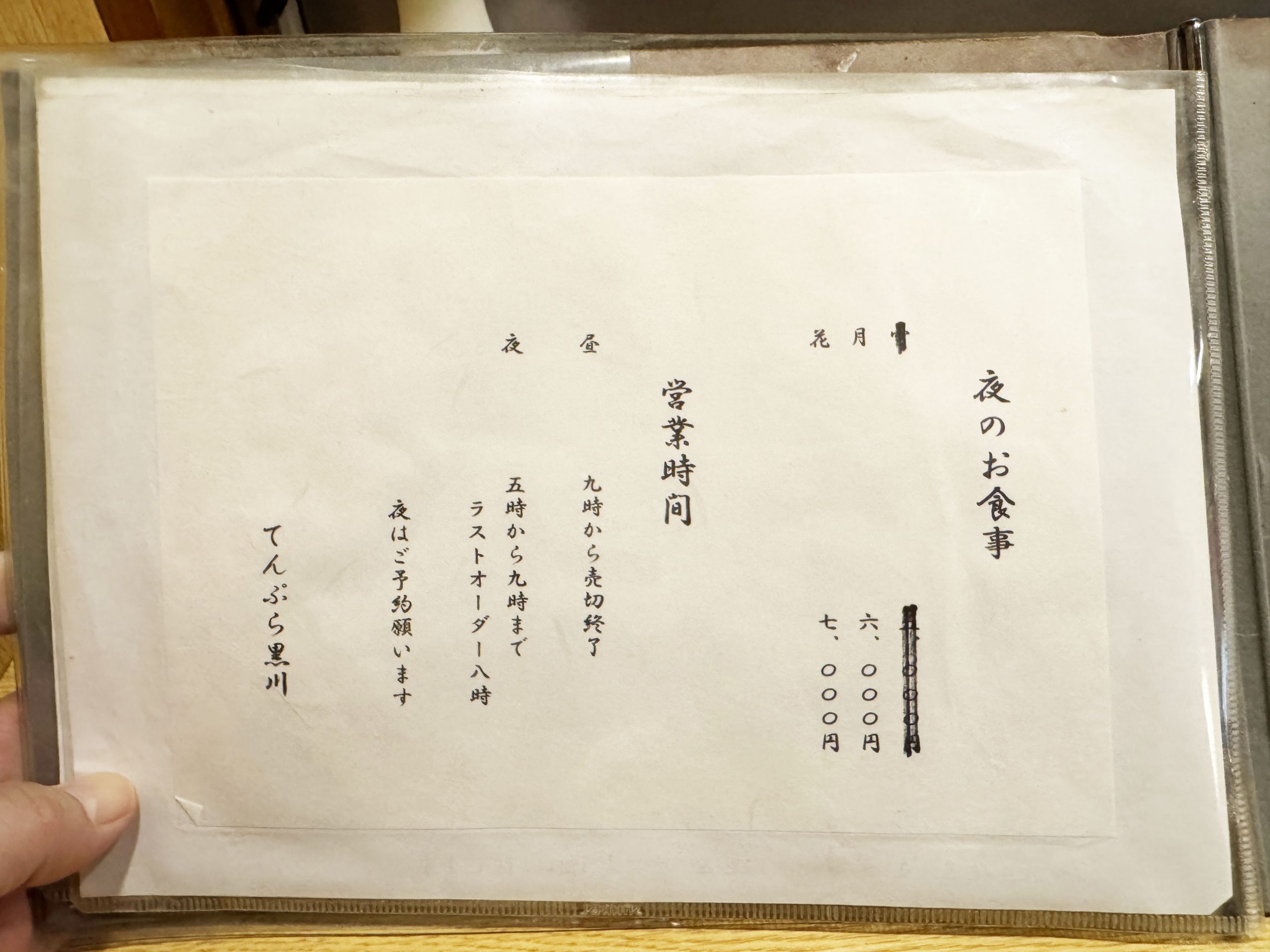 店名: てんぷら黒川