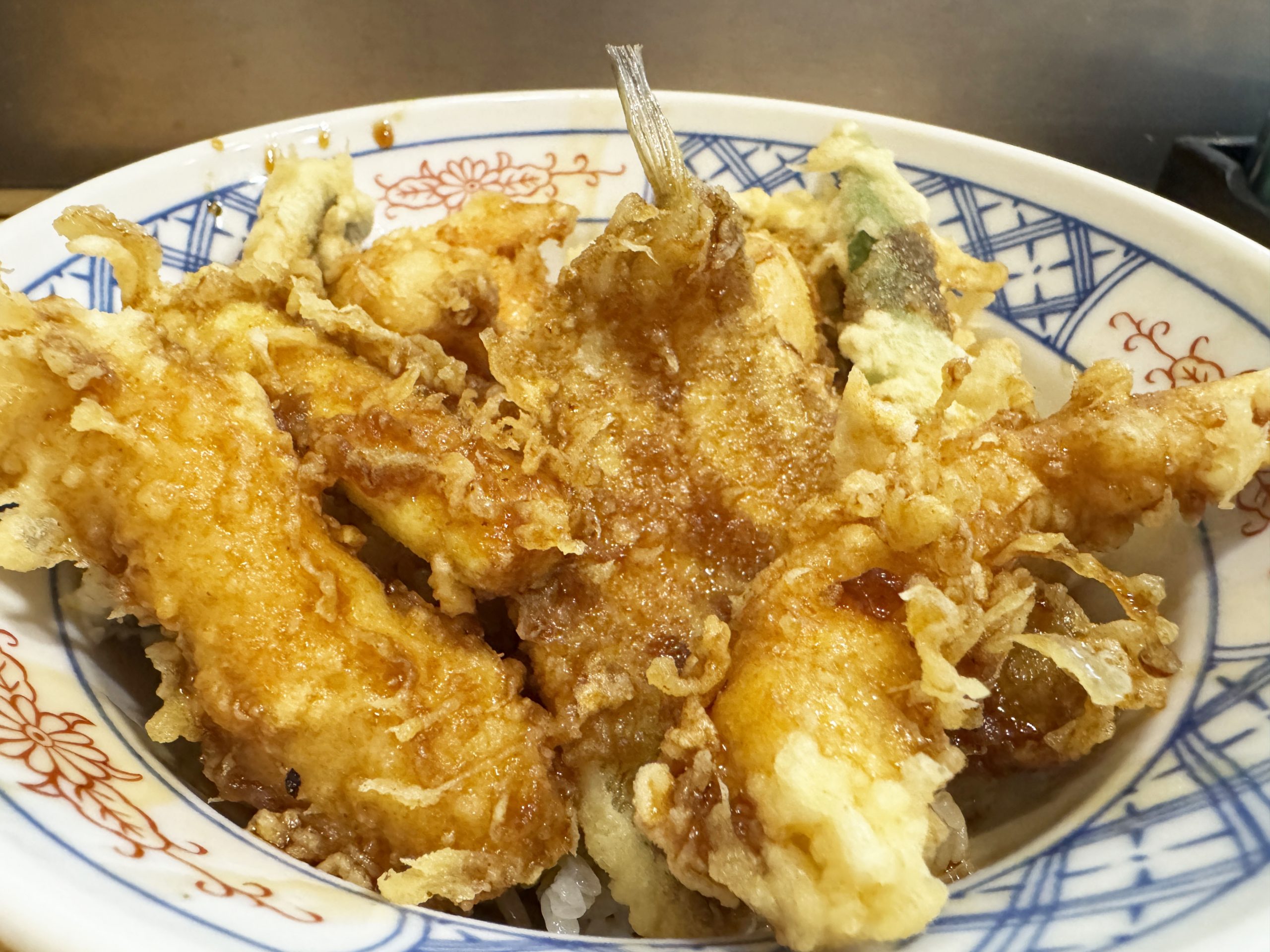 シャリッと揚げられた天ぷらに、タレがジュワッと染み込んでいて、ビジュがイイ。