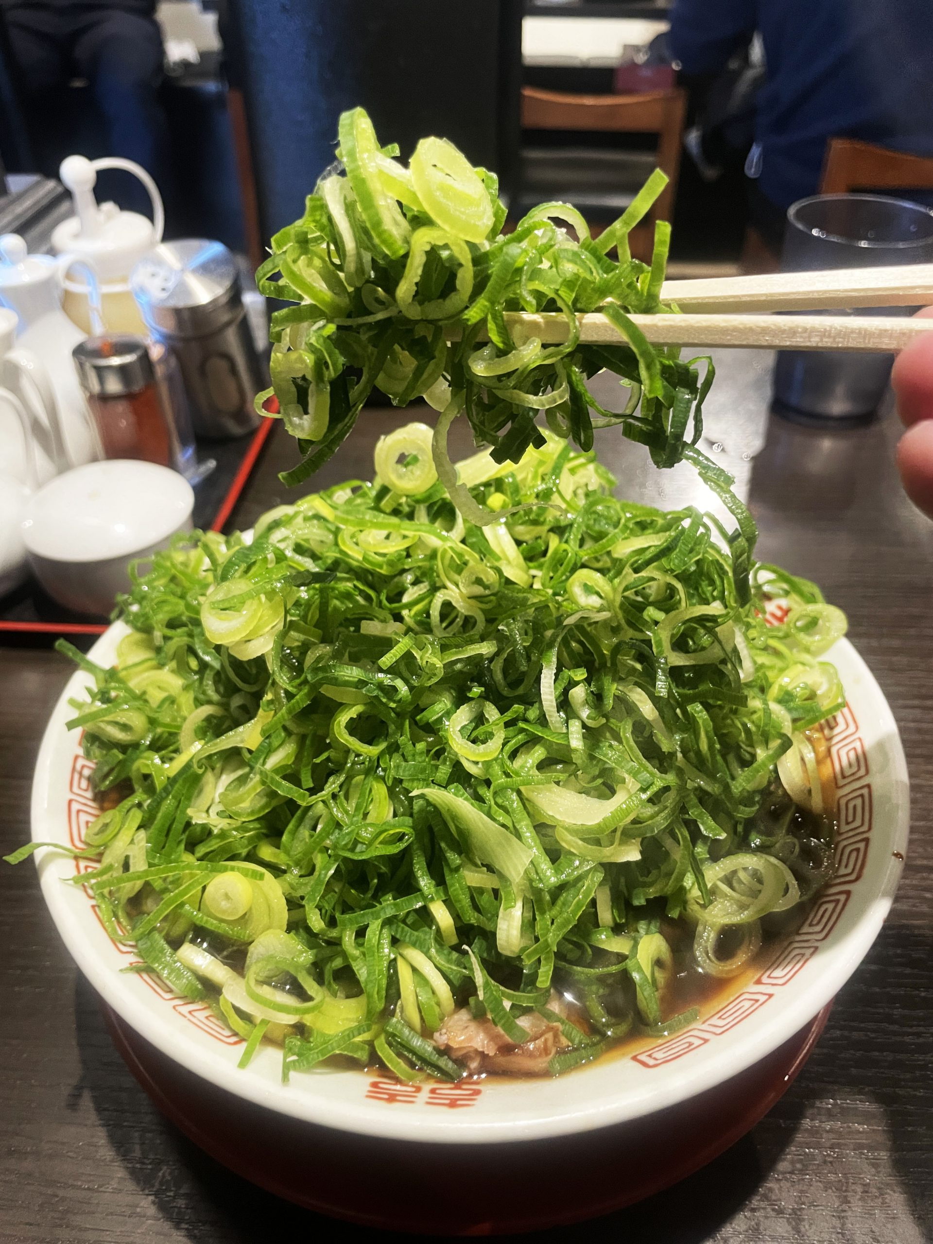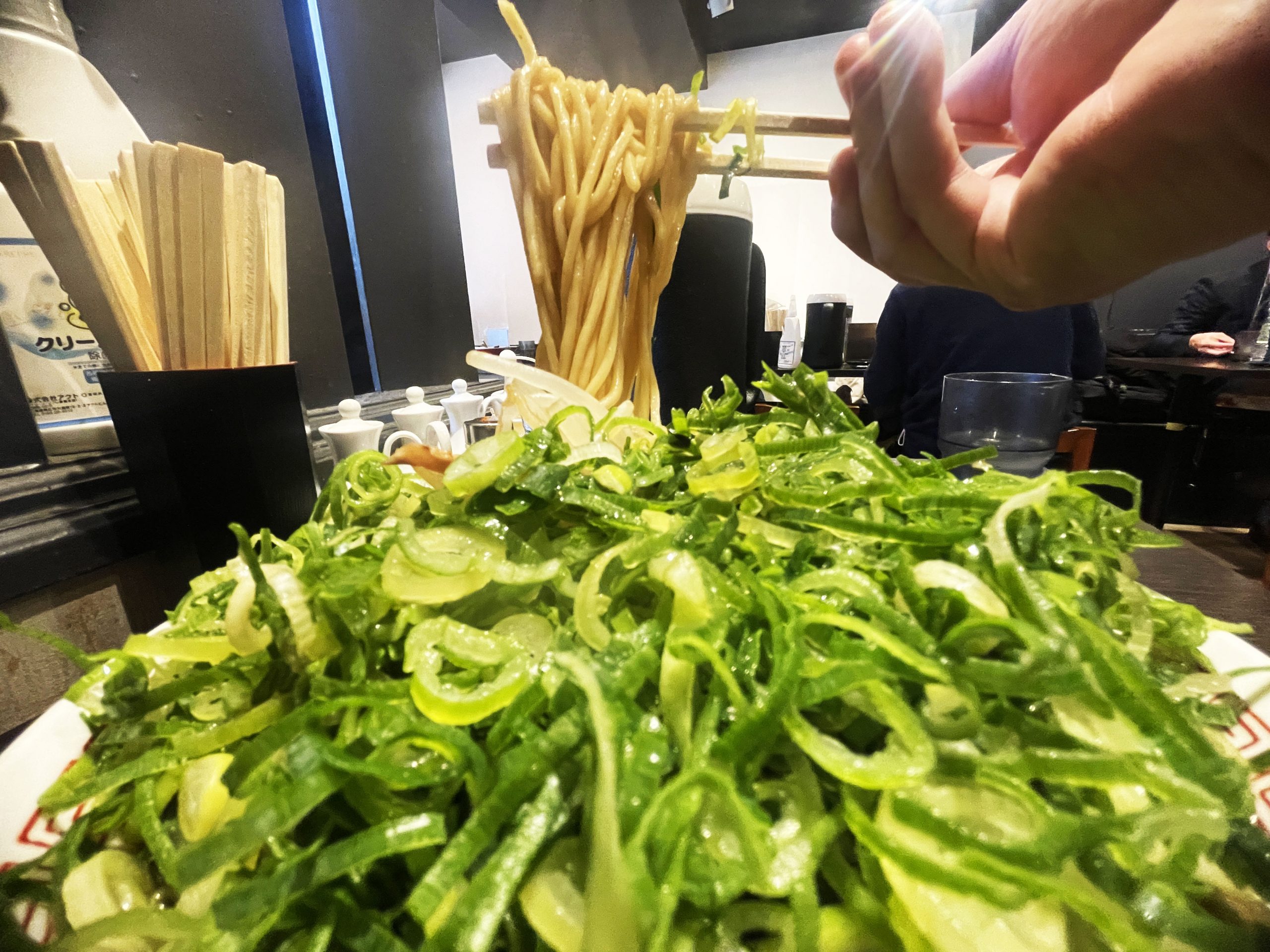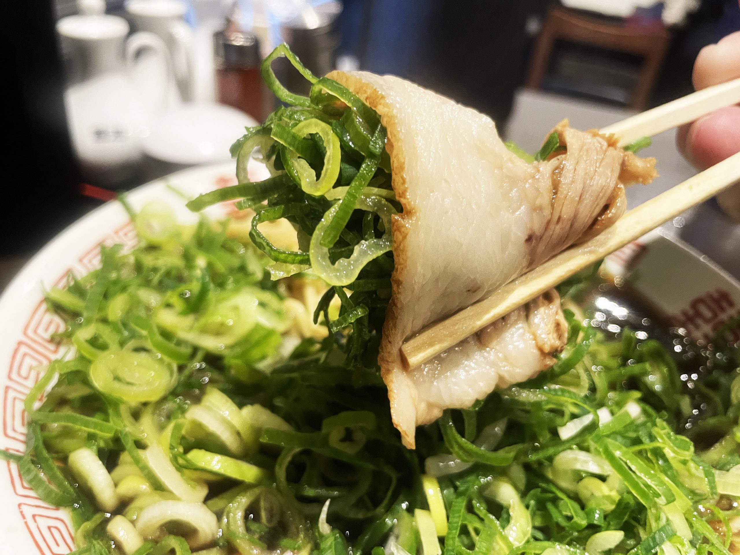 そのチャーシューで包んで食べる麺が至高だ。そして、チャーシューで包んで食べるネギも美味である。