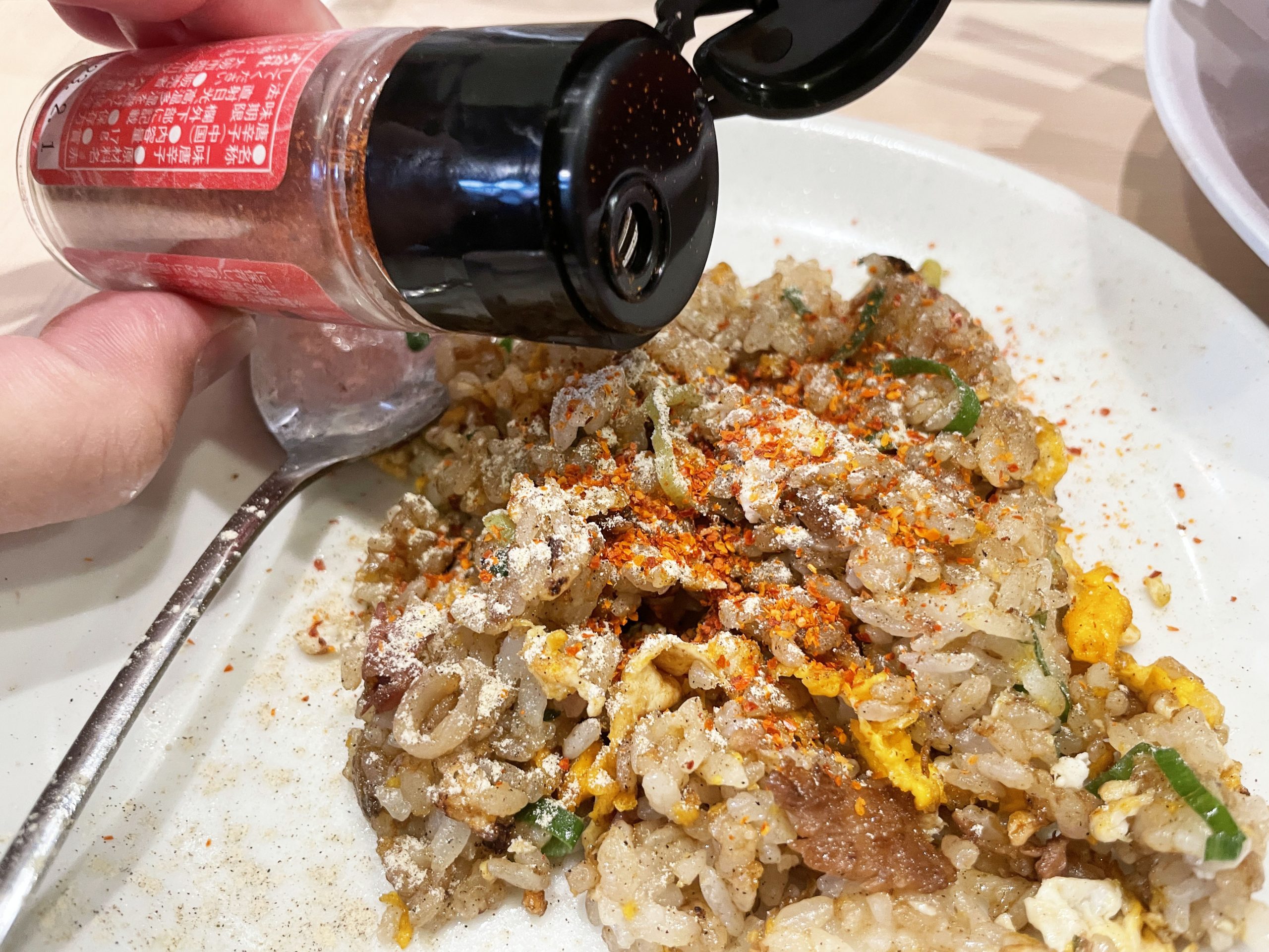 塩味が塩味を高めあう、初めてのエクスペリエンスがそこにある。チャーハンに唐辛子をかけると、より美味しさが際立った。