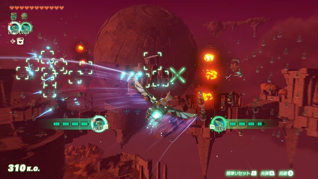 ▲唐突に始まるシューティングステージ。まさか「ゼル伝」で「スター・〇ォーズ」的な光景を拝むことになるとは