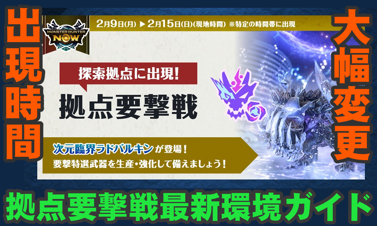 そして現在、2度目の拠点要撃戦に向けて全国のハンターが準備を進めている中、出現時間や報酬に関して変更を行うと公式より発表があった。