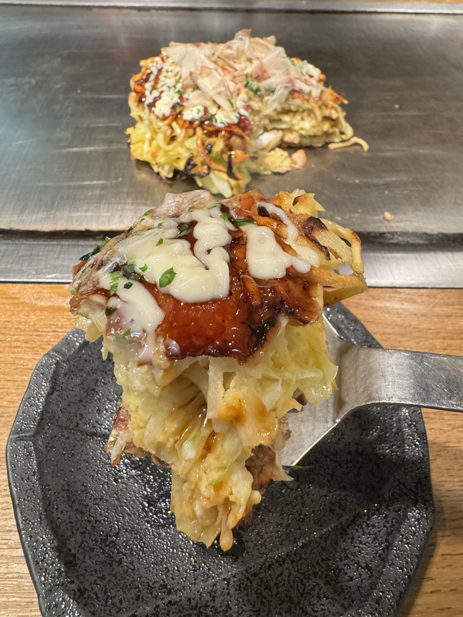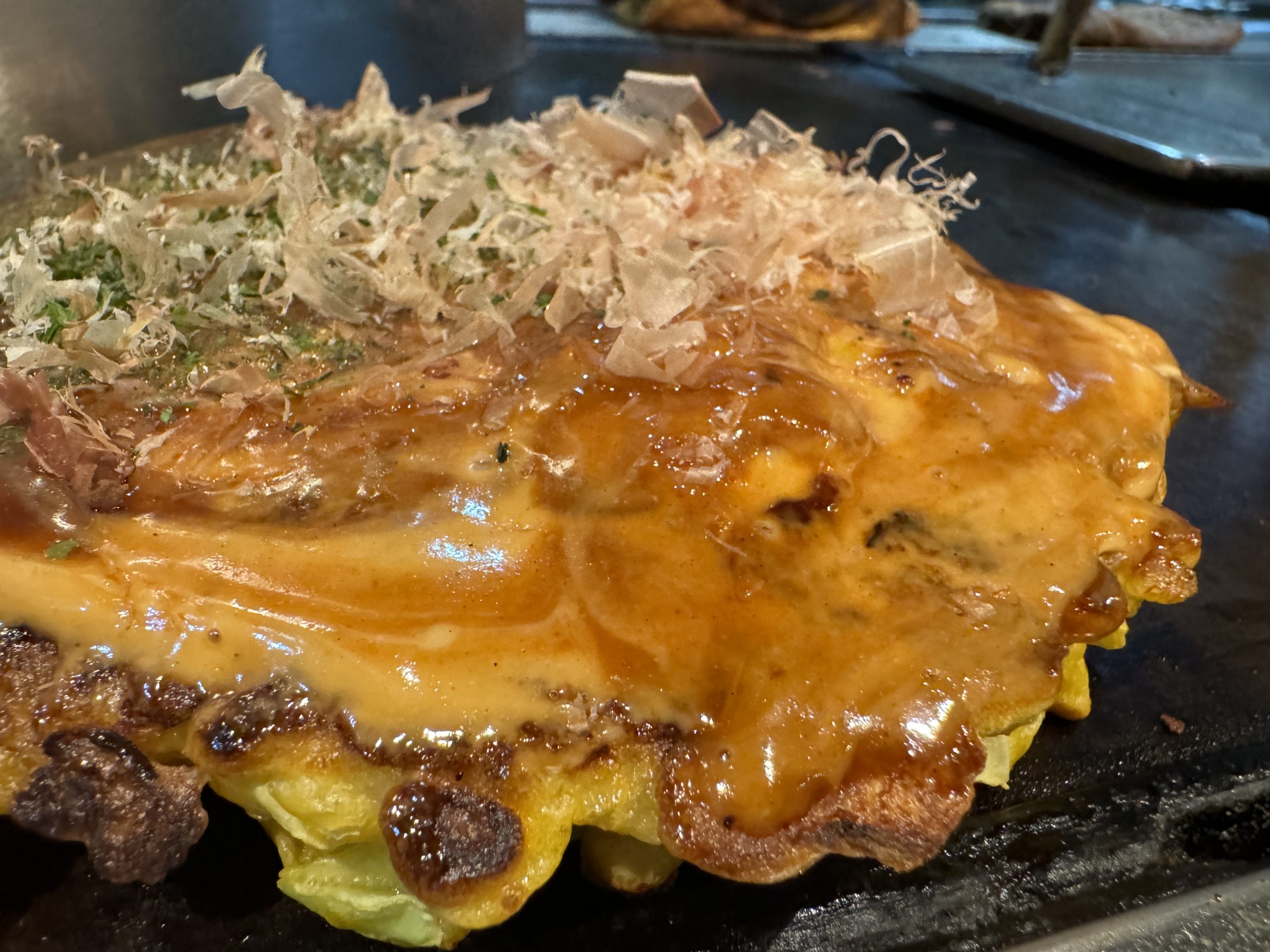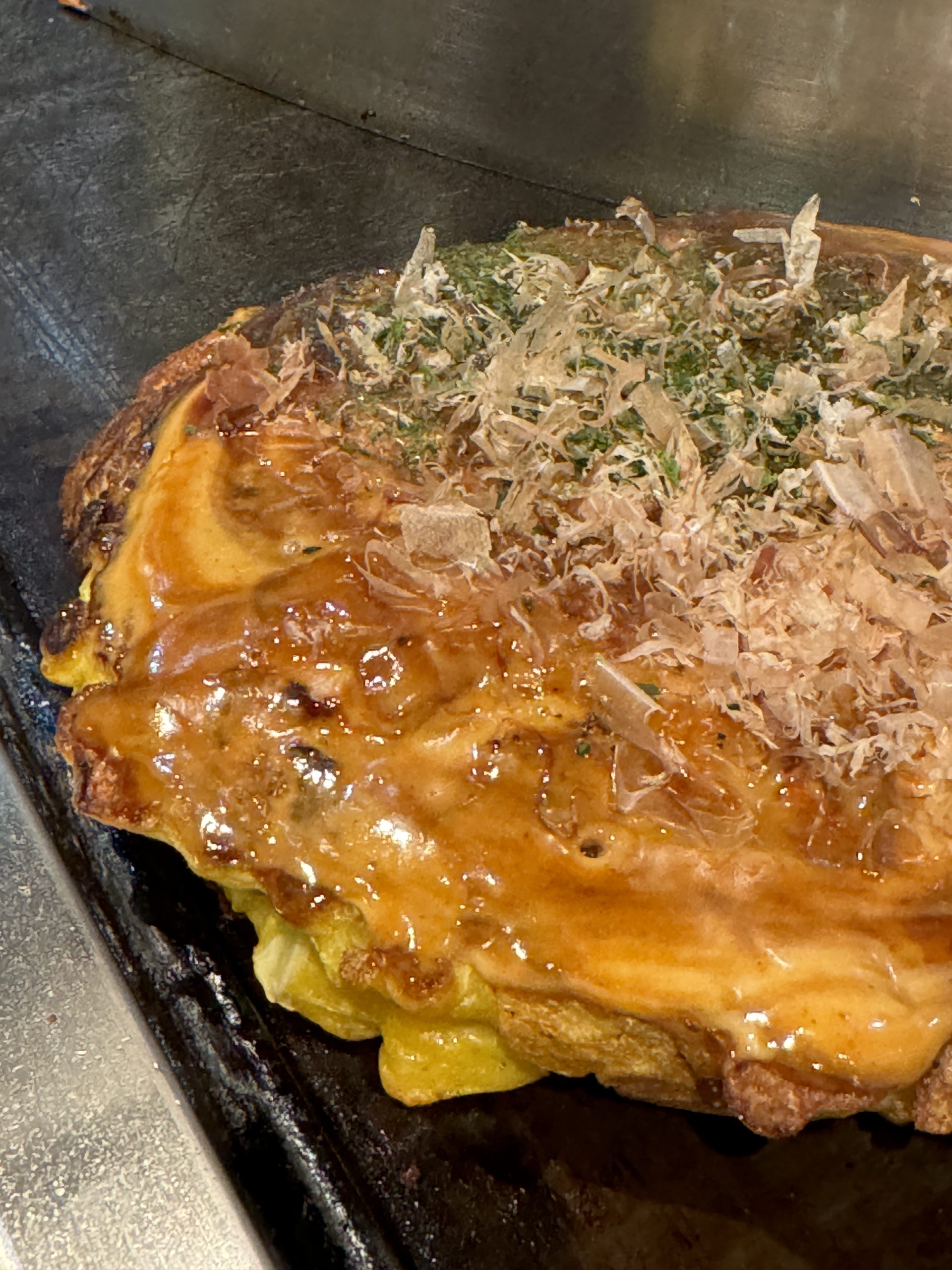 ここのお好み焼き、ふわっふわなのに、しっかりカリカリとしたリズミカルで心地良い食感が楽しめ、ヤミツキになる。ライスも食べようと思ったが、残念ながら売り切れていた。ここを訪れたら、できれはお好み焼き2枚は食べておきたい。