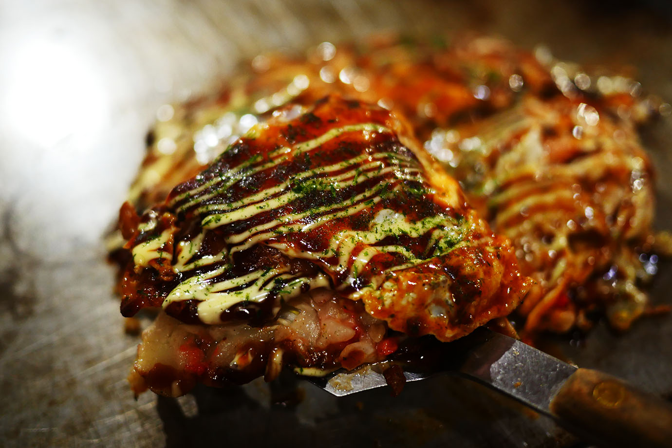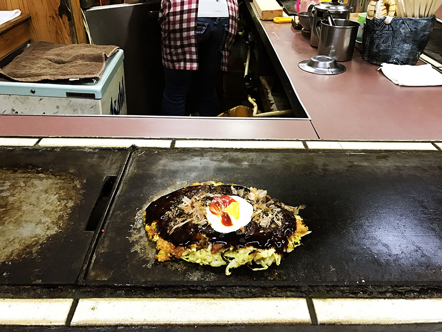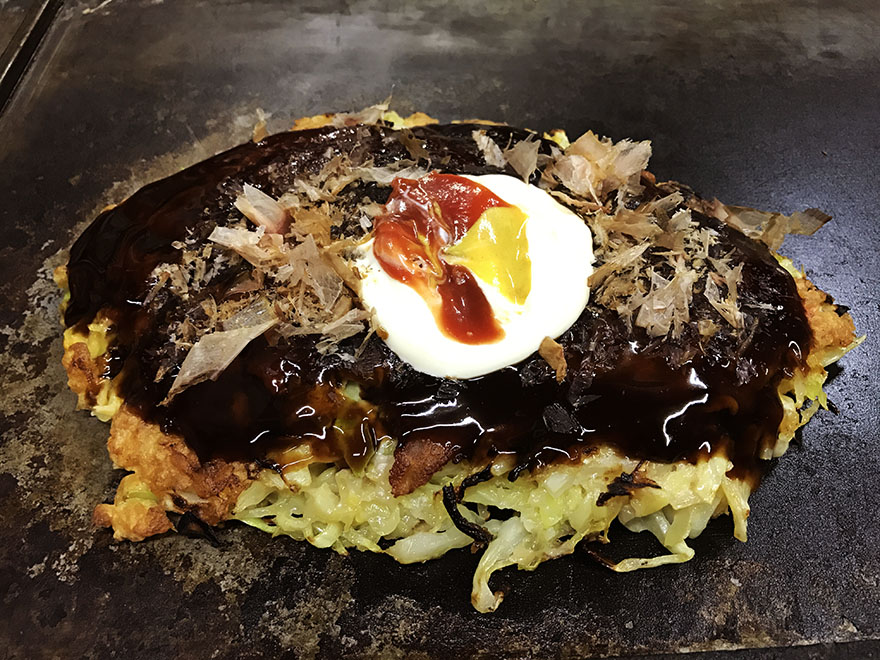 世界的に絶大な人気を得ているお好み焼き屋で、海外からも多くの観光客が訪れるほど、その美味しさを求めてやってくる人がいる。ここのお好み焼きは、他店と比べて若干小さめだが、そこには美味しさがぎゅぎゅーっと詰まっている。