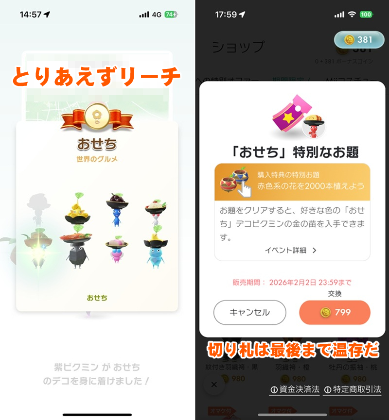 おせちを身に付けデコピクミンのコンプリートまであと2種類。