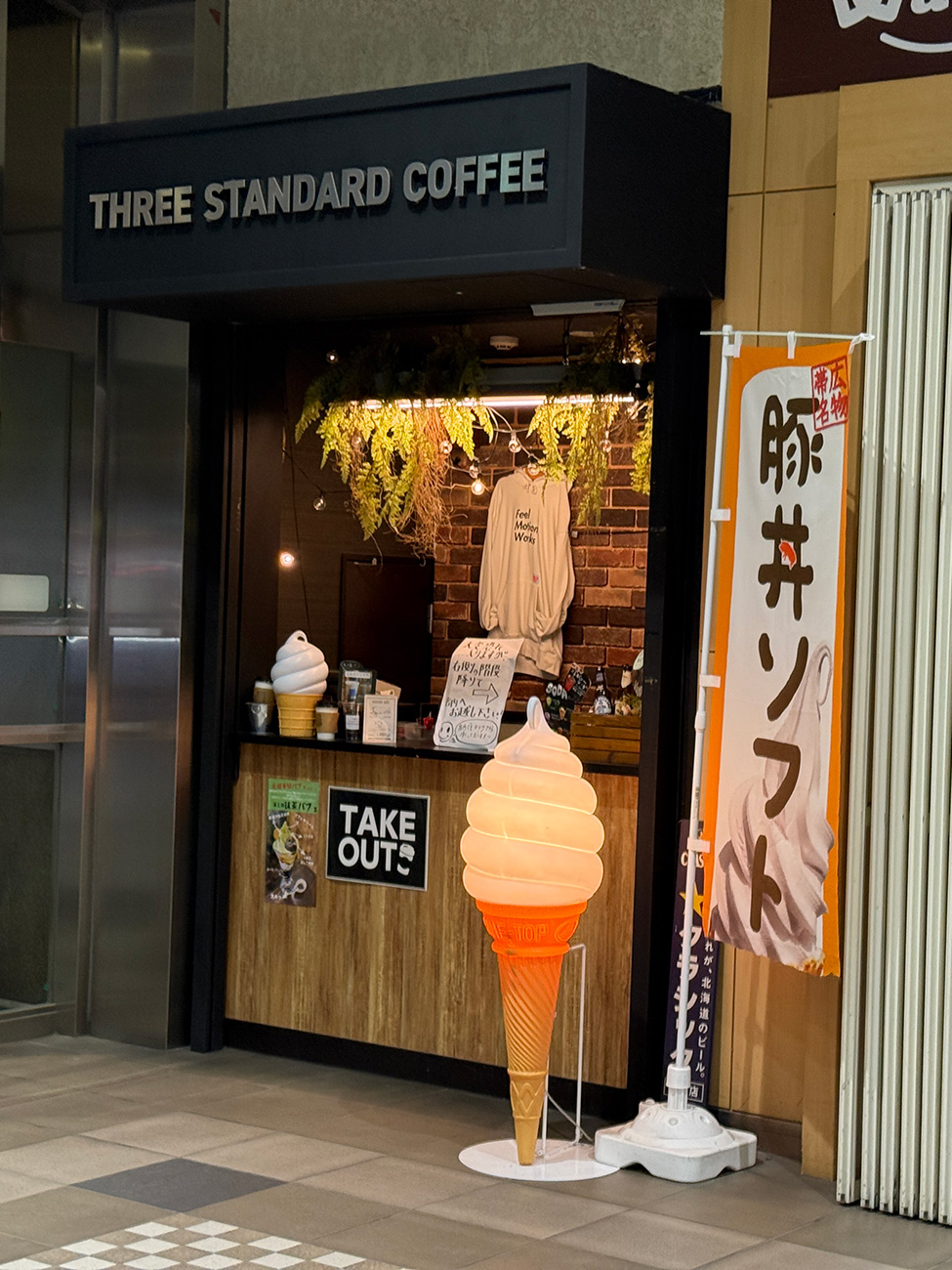 そして空港に向かうバスに乗るため、JR帯広駅に向かうと、駅ビル内にあるカフェに怪しげなのぼりを見つけてしまいました。