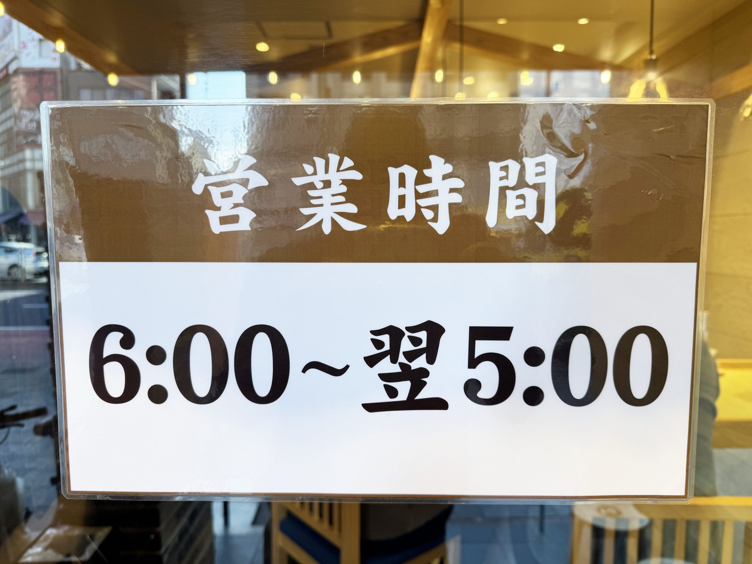 なんと、朝6:00から翌朝5:00までずっと通し営業。