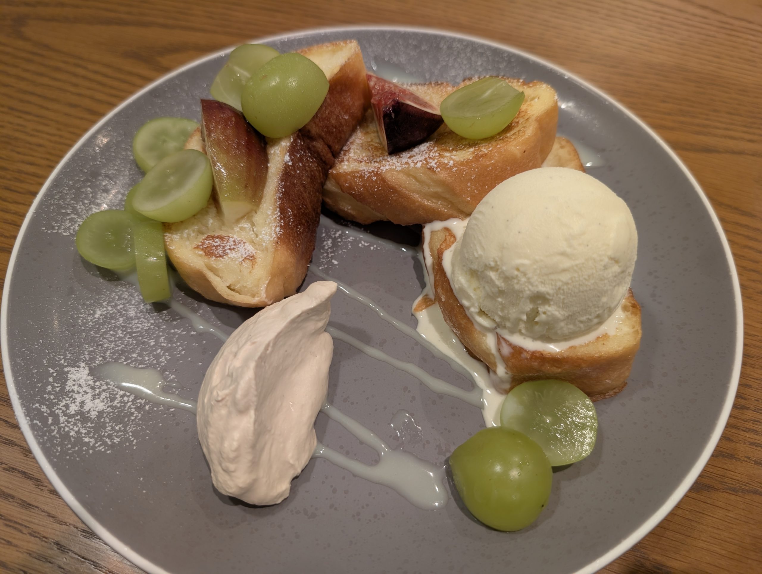 季節の新メニューからは、和を感じる「あんバターフレンチトースト」が登場中です。北海道産小豆を使用した日影茶屋特製のつぶあんとカルピスバター、バニラアイスを添えたフレンチトーストは、お買いものでちょっと疲れた時になどに欲しそうなメニューです。横浜髙島屋店では、3枚 1,815円/2枚 1,540円。テラスモール湘南店では、3枚 1,760円/2枚 1,485円。店舗によって、価格が異なります。