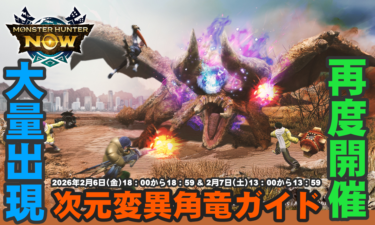 2026年1月31日(土)当日、次元変異ディアブロスの大量出現イベントがネットワークエラーで中止。その振り替え日がついに明日(2/6)から始まることが決定した。