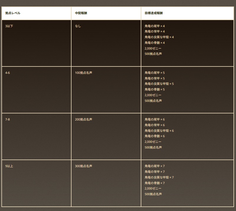 また、モンスター大量出現の目標達成報酬は下記の通り。
