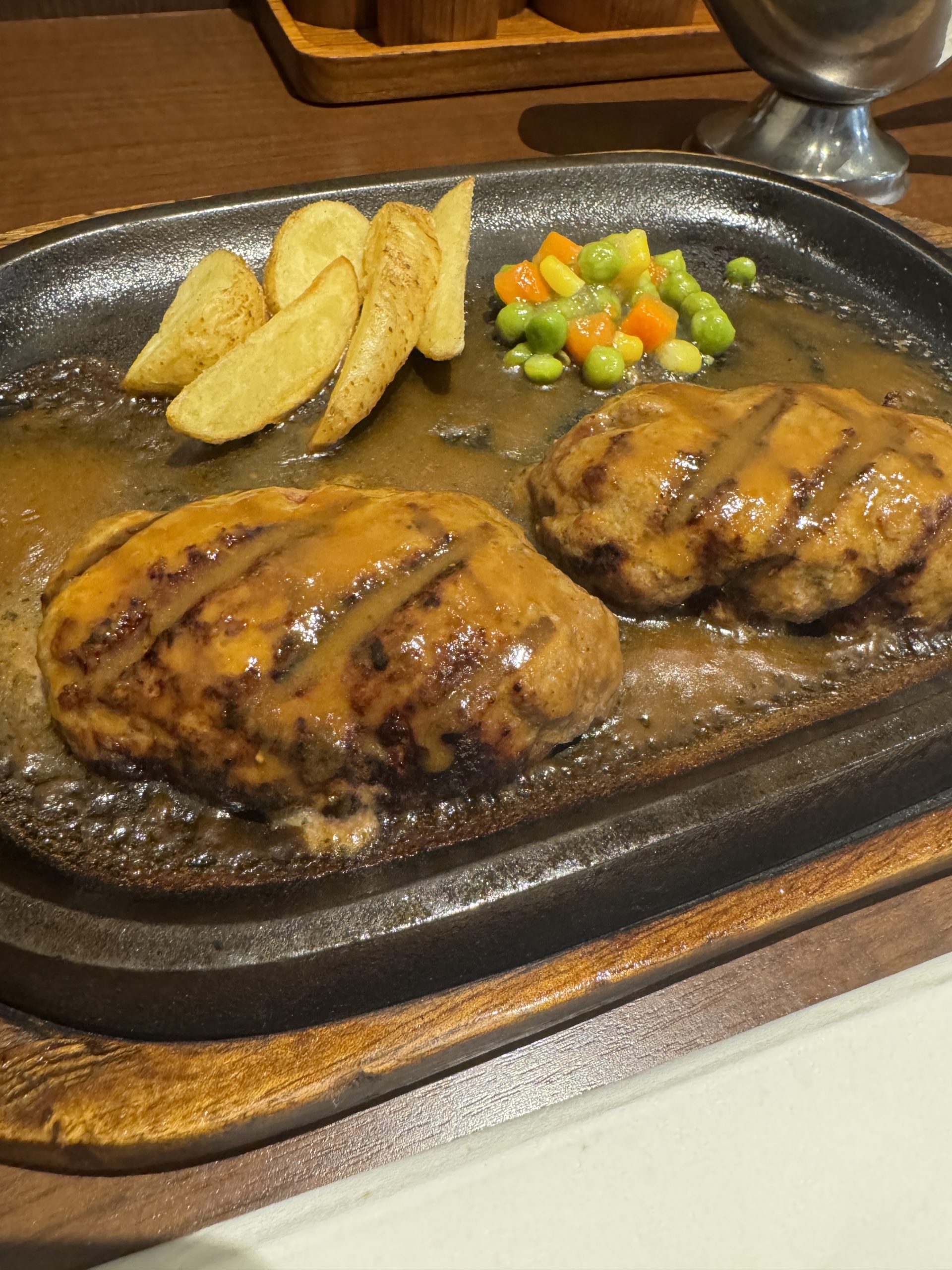 ハンバーグ・ステーキレストラン「アルカサール 神保町店」(東京都千代田区神田神保町1-5-10 堀内神保町ビルB1F)のハンバーグです。