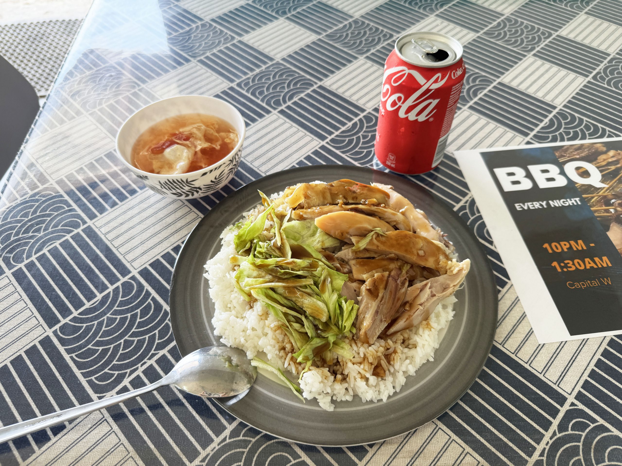 ナウル共和国に到着して、最初の食事は食堂で食べた「チキンレタスぶっかけ飯」でした。宿泊した「MENEN HOTEL」(メネンホテル)から徒歩圏内にある食堂「Capital W」(キャピタルダブリュ / Meneng, Island Ring Road, Atoro, Nauru)で食べました。