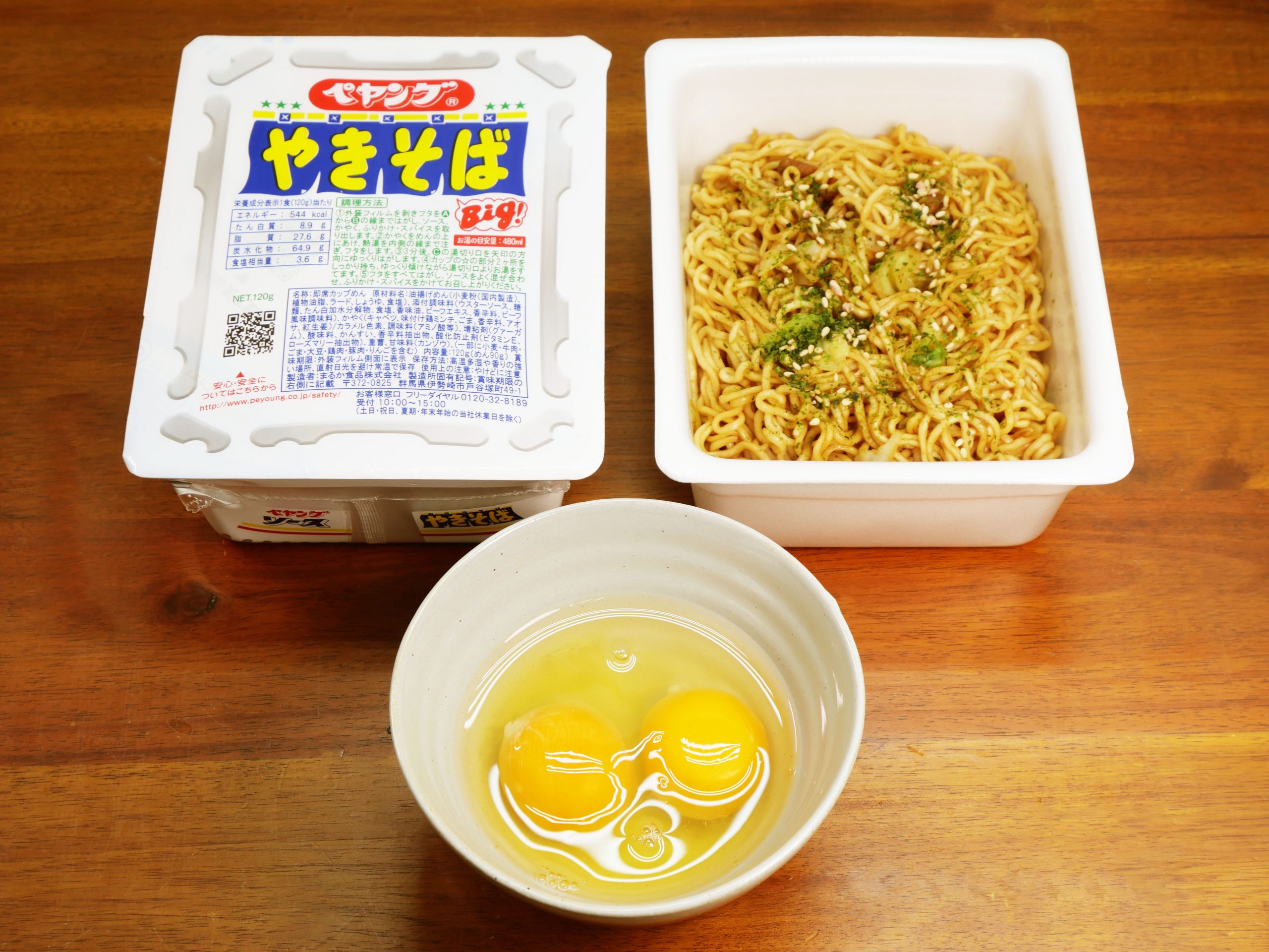 単に生卵をあわせるだけで、数百円のペヤングが、値段以上のご馳走へと昇華する。
