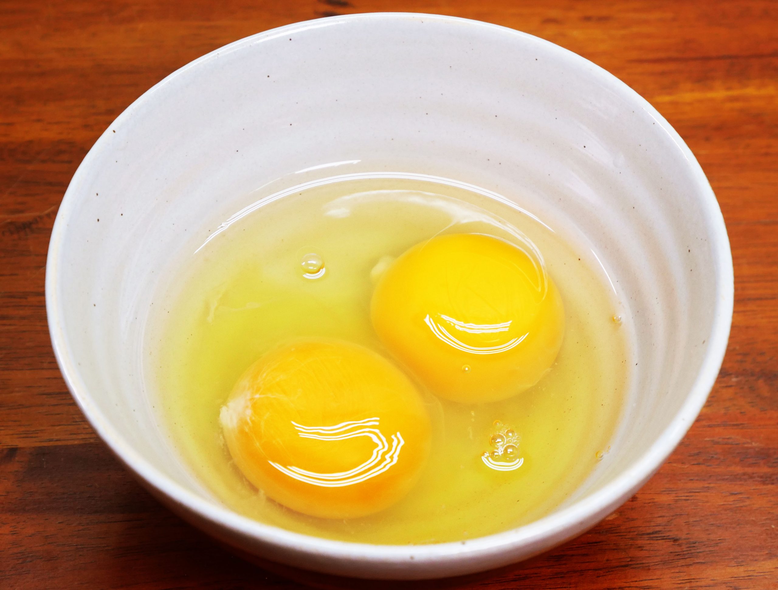 生卵をしっかりとかき混ぜて、溶き卵にする。