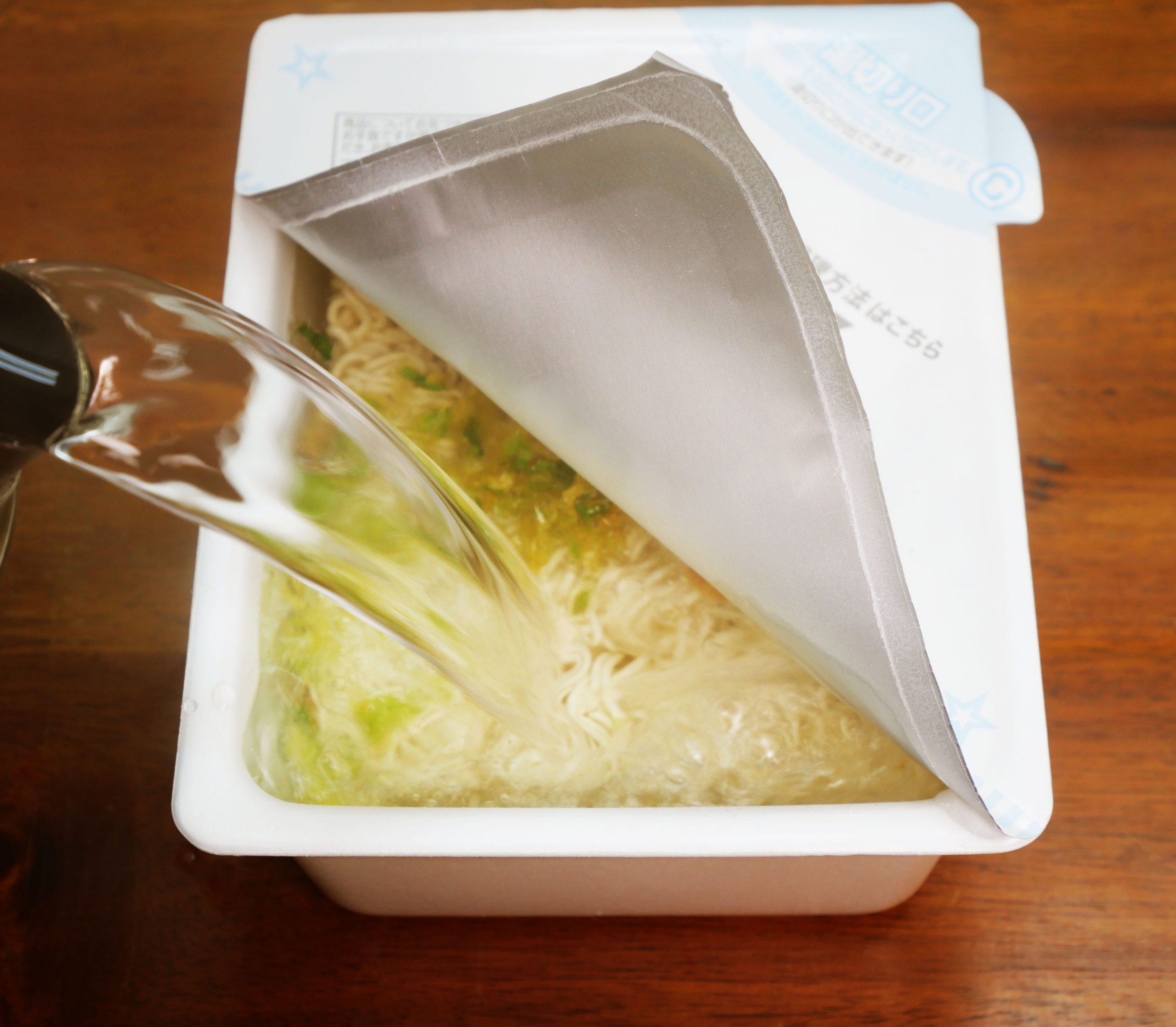 ペヤングに熱湯を注ぎ、3分待ってお湯を捨て、いつものように仕上げていく。