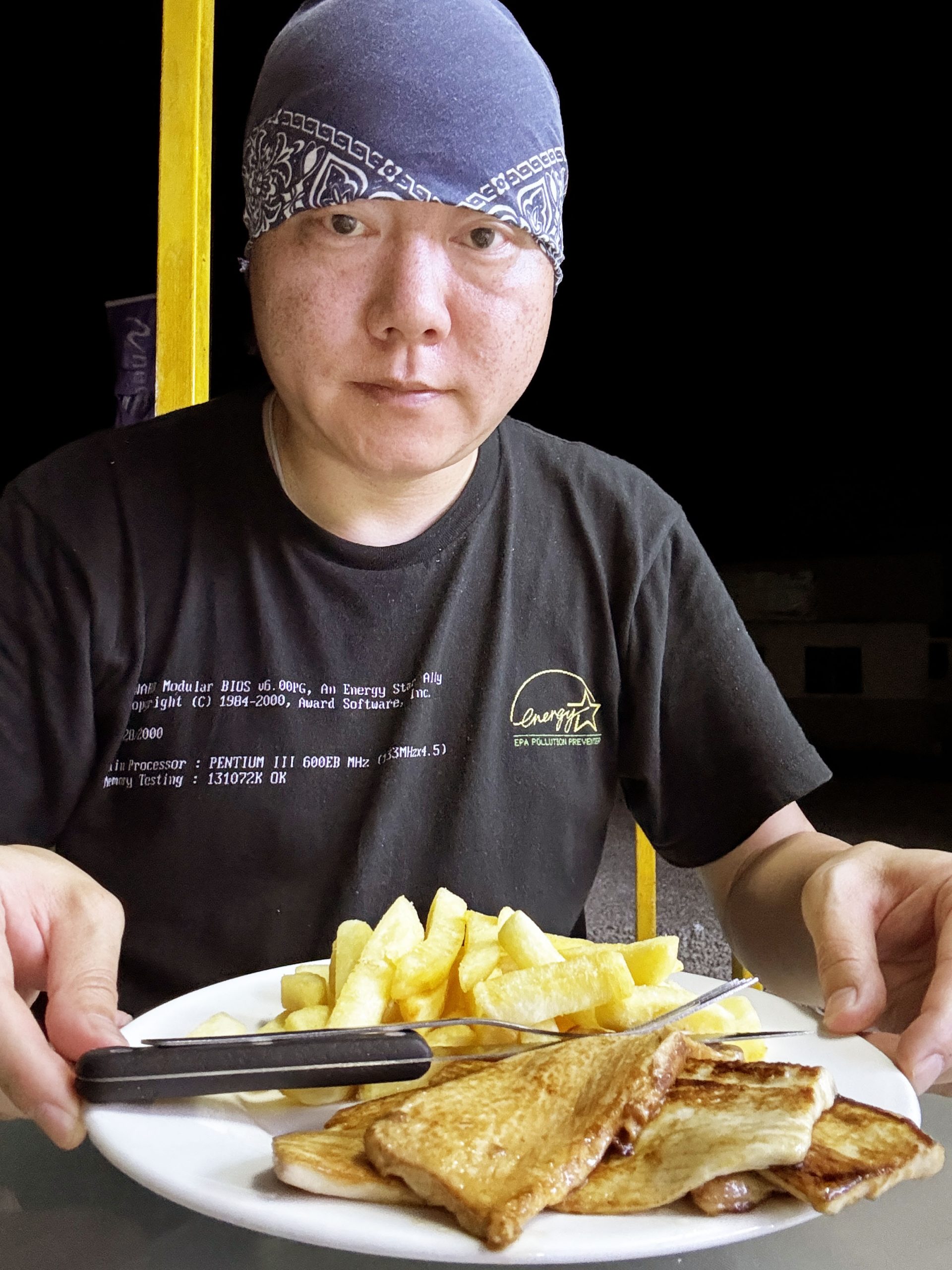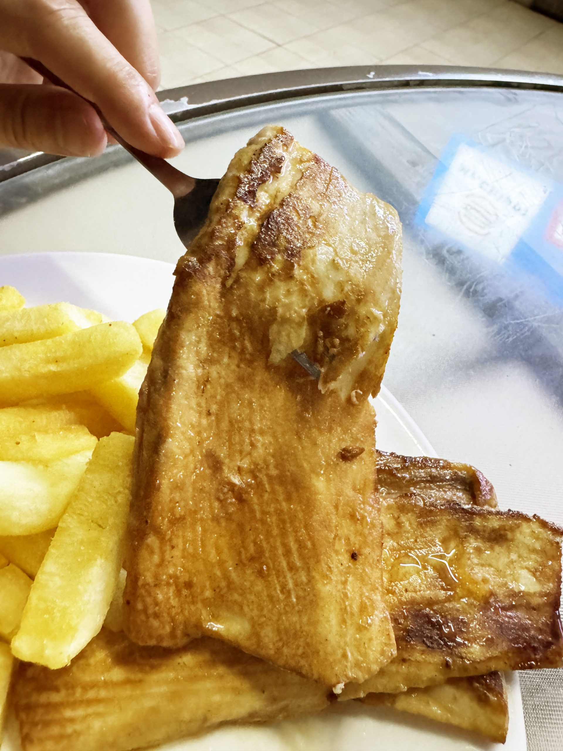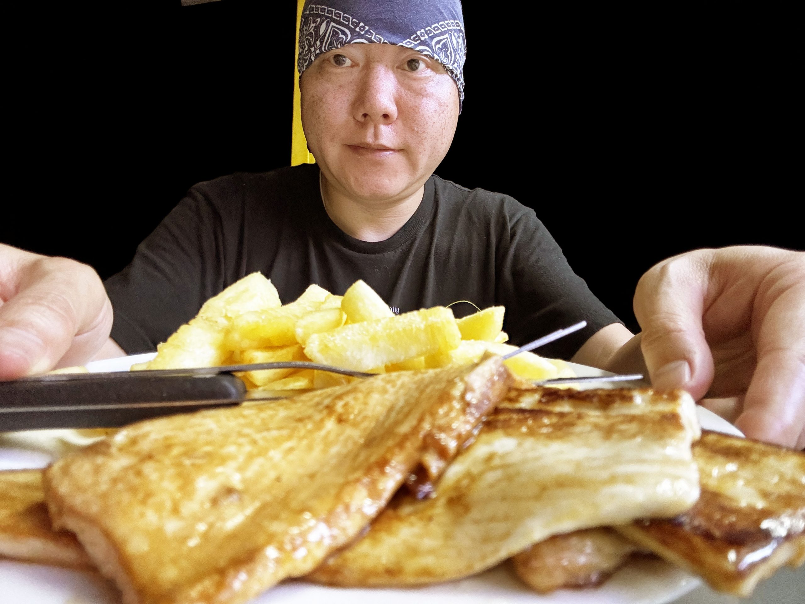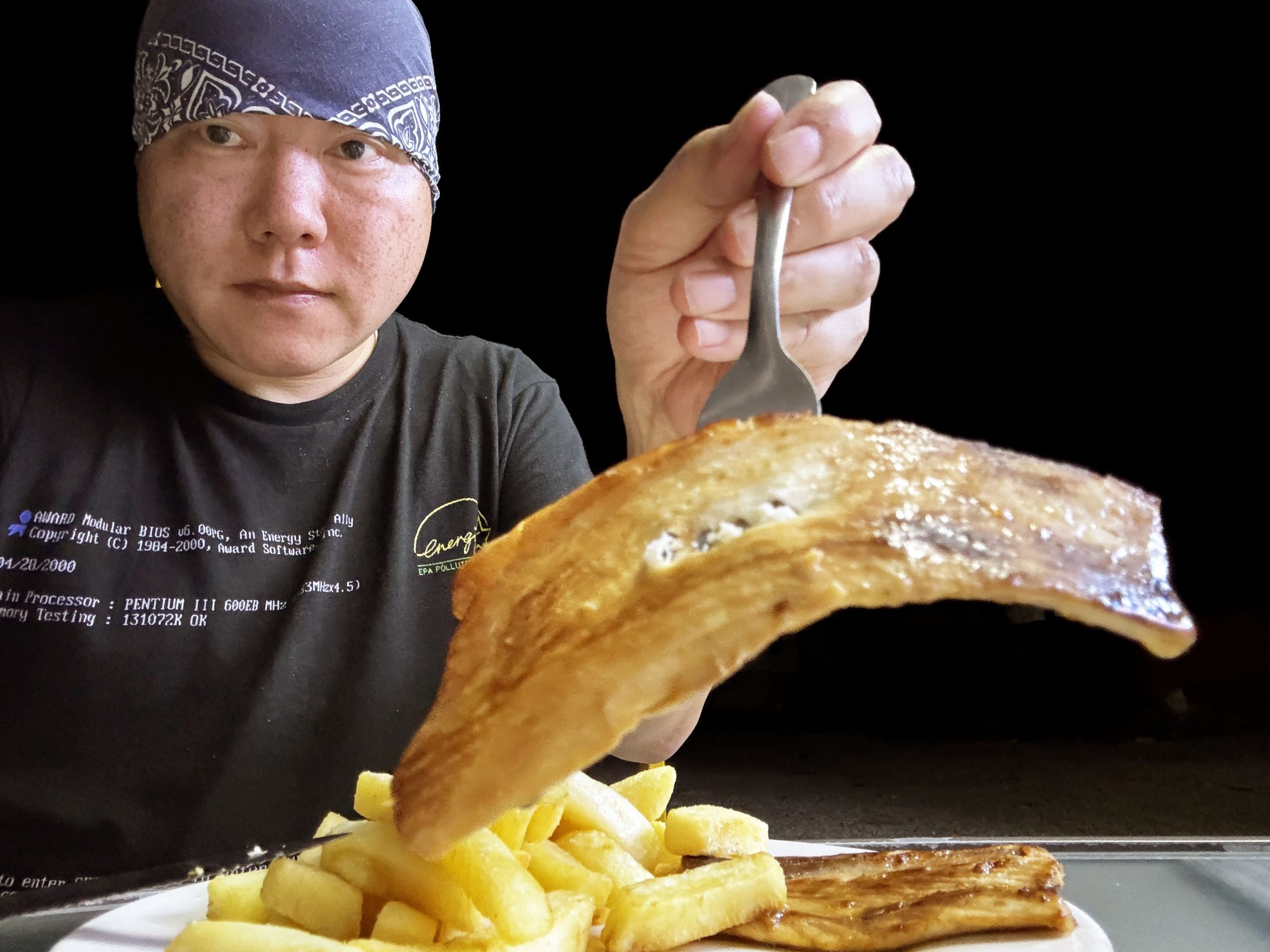 ライスをオーダーすることもできますが、ここは添えられたフライドポテトで食べるのがナウル流(な気がする)。ほんのり塩味でマグロの旨味が引き立てられているし、イイ感じにきつね色に焼かれてメイラード反応で旨味爆上がり。たまりません。